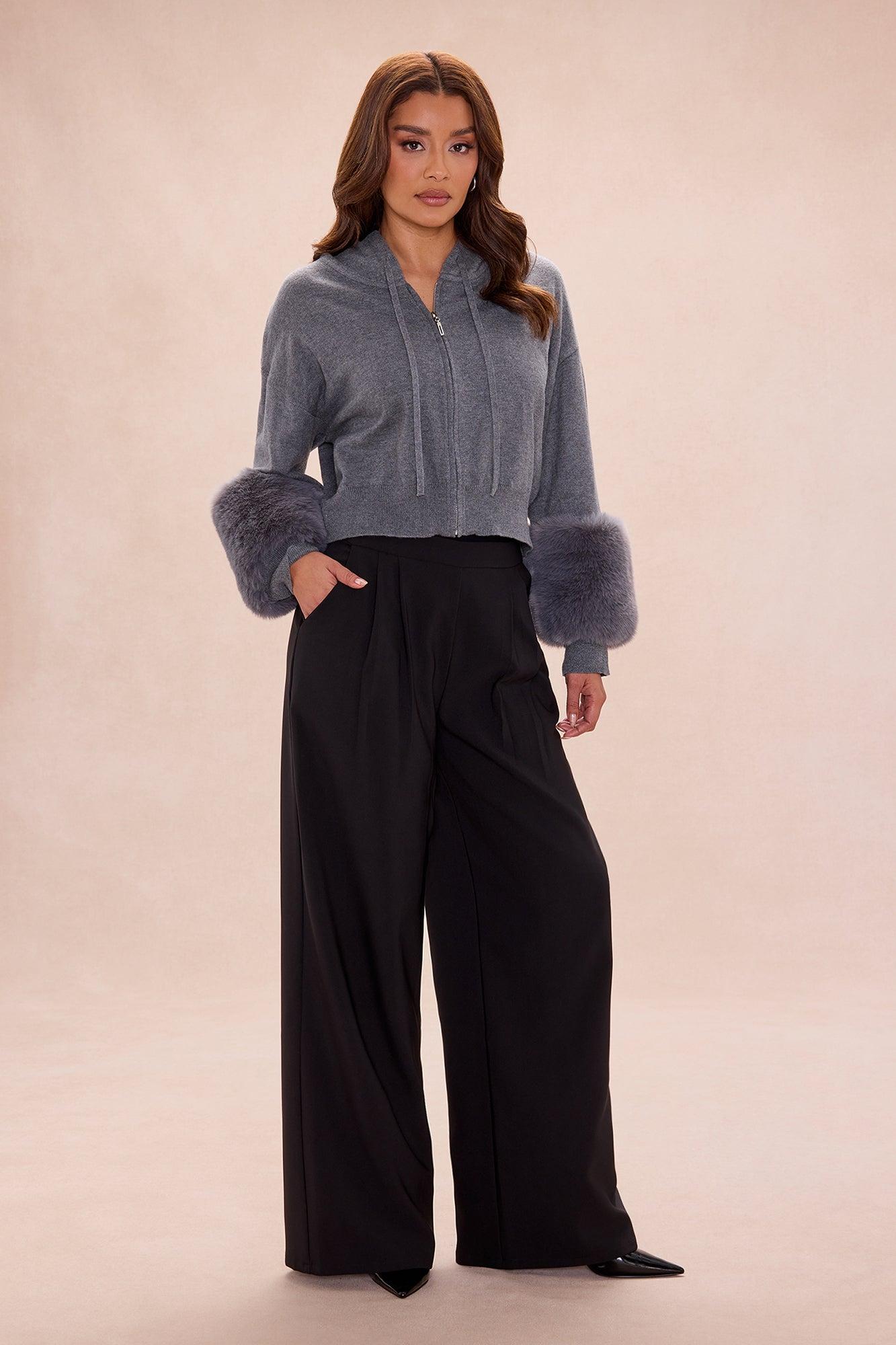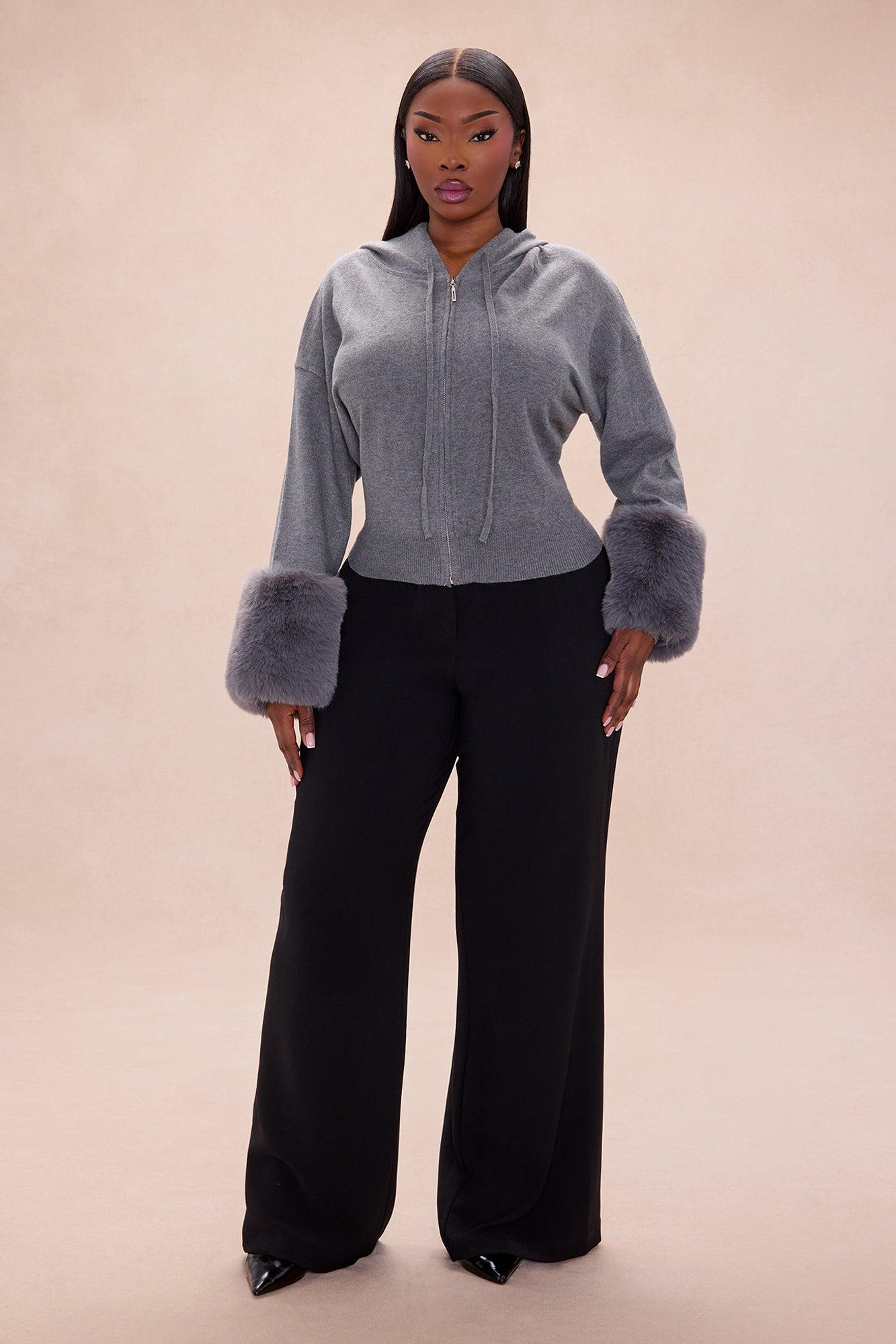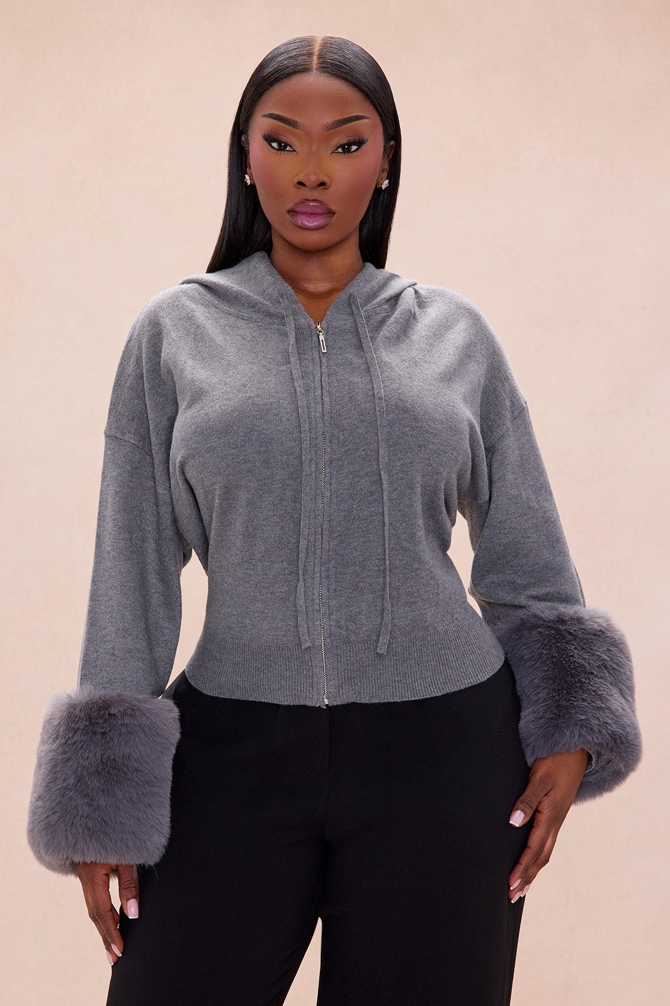 Keep Warm Fur Cuff Hoodie - Grey Female