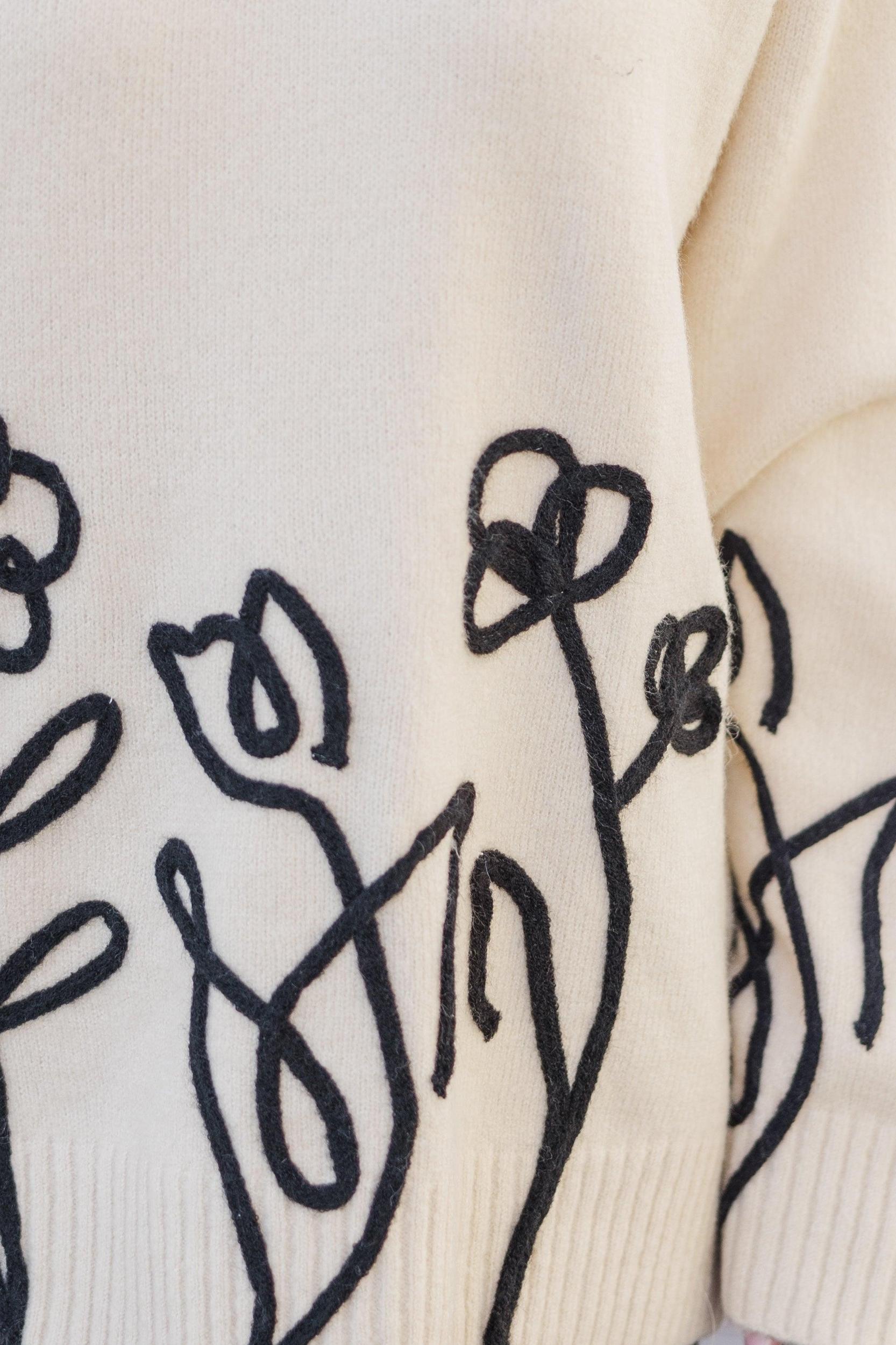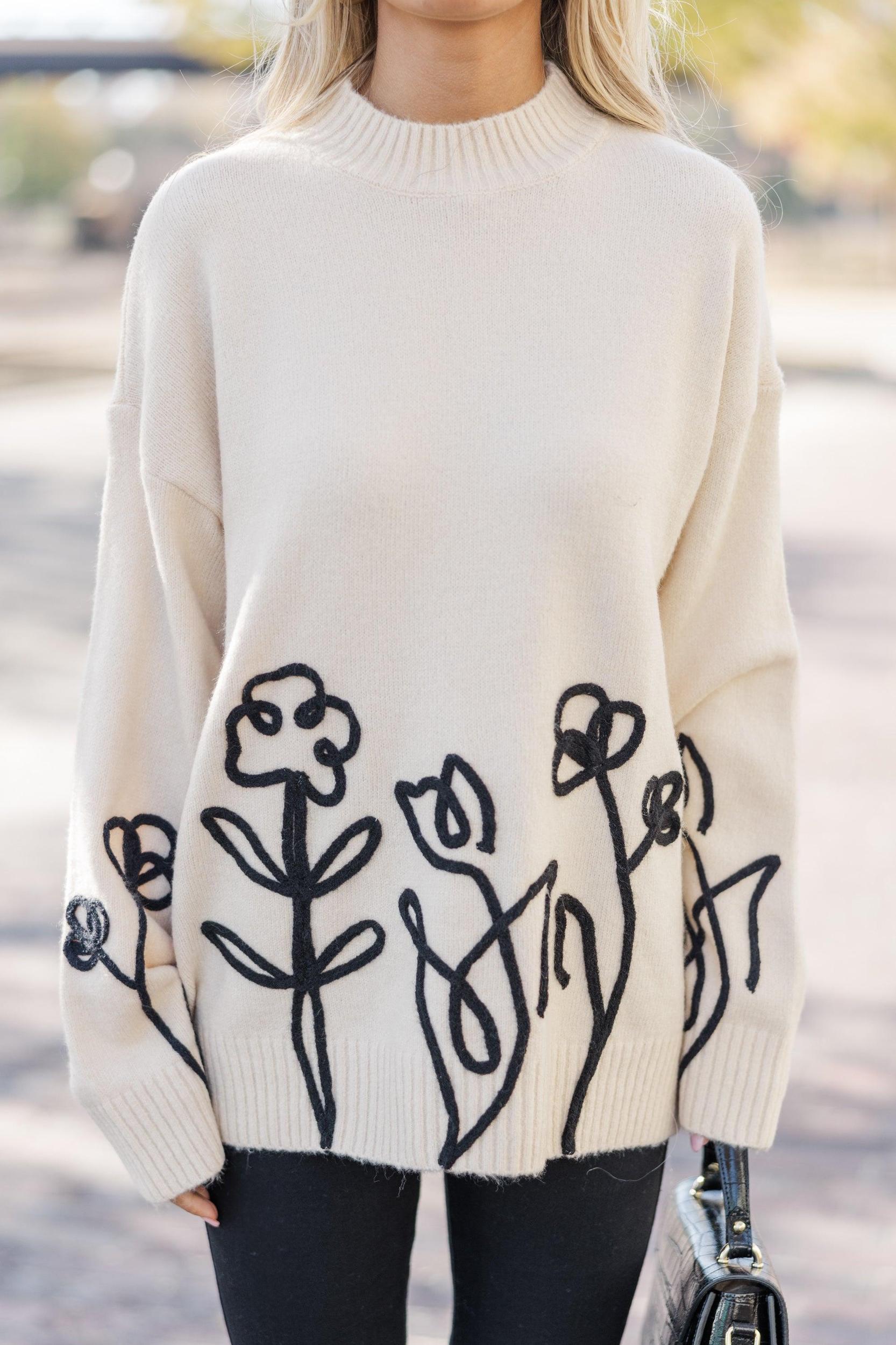 We are truly in love with this floral sweater! That floral embroidery is so chic and we especially love it in these neutral hues. The length of this sweater is also really nice. Round neckline Long sleeves Floral embroidery Generous stretch Baileigh is wearing the small.