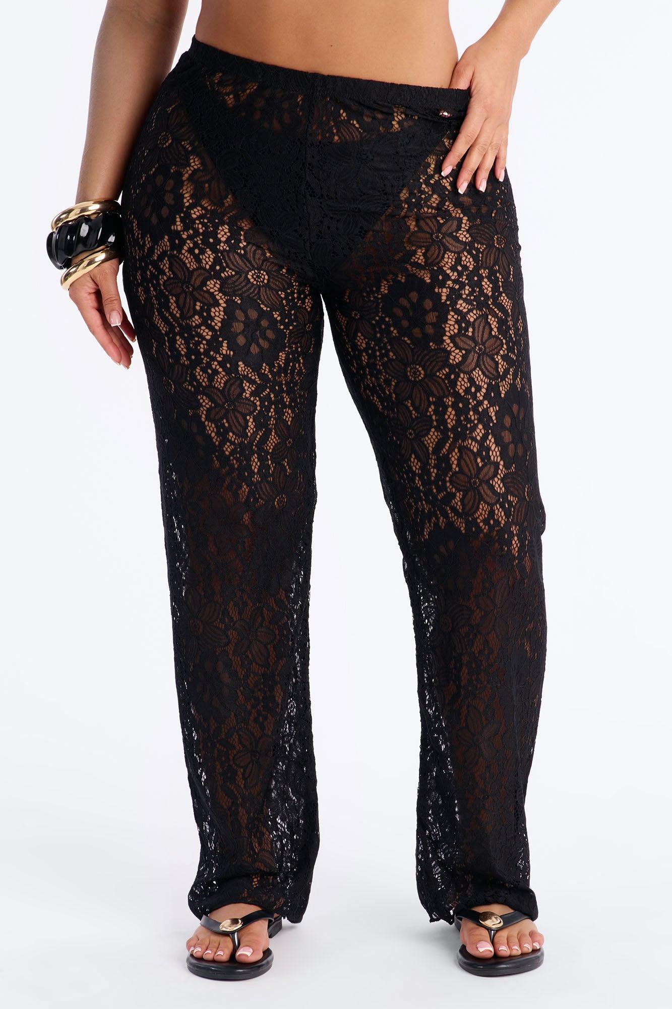 Keeping It Lacey Swim Lace Cover Up Pants - Black Female