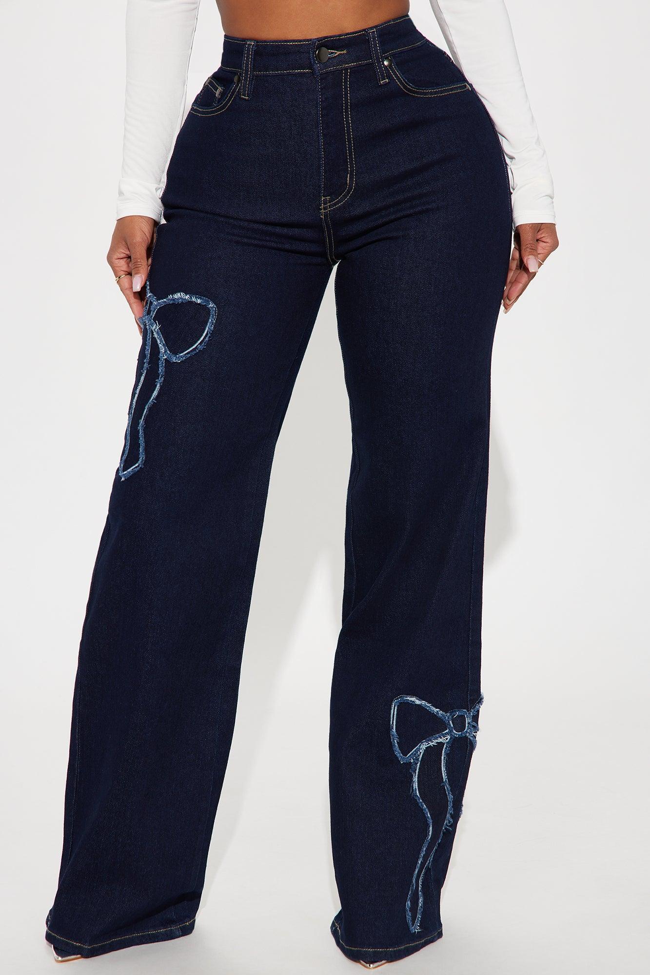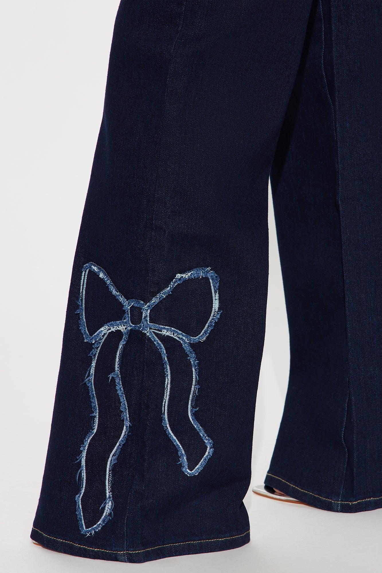 Available In Dark Wash. Straight Leg Jean 5 Pocket Bow Applique Detail 11" High Rise 32" Inseam High Stretch Disclaimer: Due To The Specialized Wash, Each Garment Is Unique. 85% Cotton 12% Polyester 2.5% Spandex 0.5% Viscose Imported California Proposition 65 WARNING: Cancer and Reproductive Harm - www.P65Warnings.ca.gov.