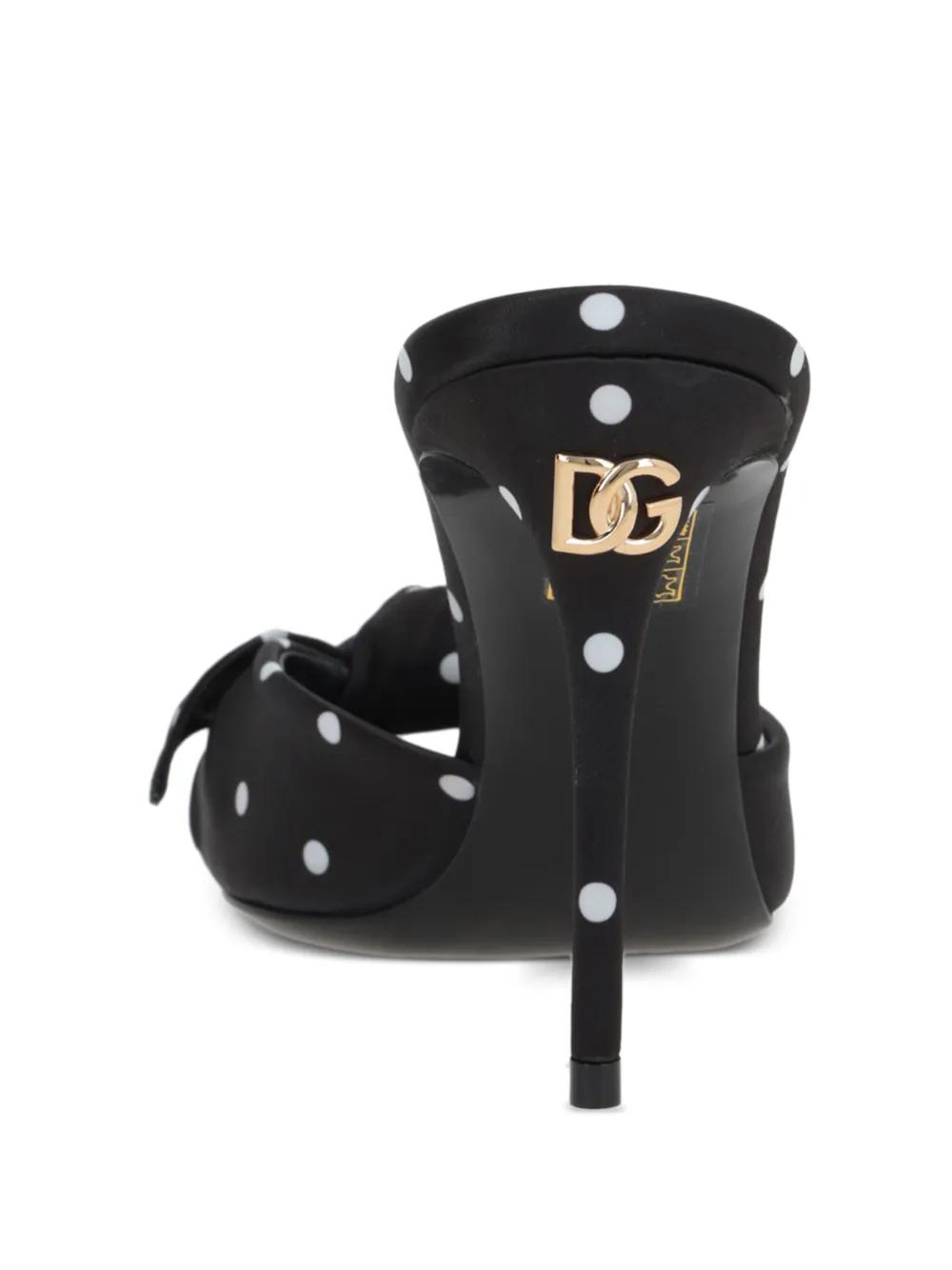 Dolce & Gabbana Keira 90mm polka-dot satin mules | Black | Polyester/Polyester/Calf Leather | Heeled Sandals | Sandals | Heeled Mules | Mules | Shoes | Women