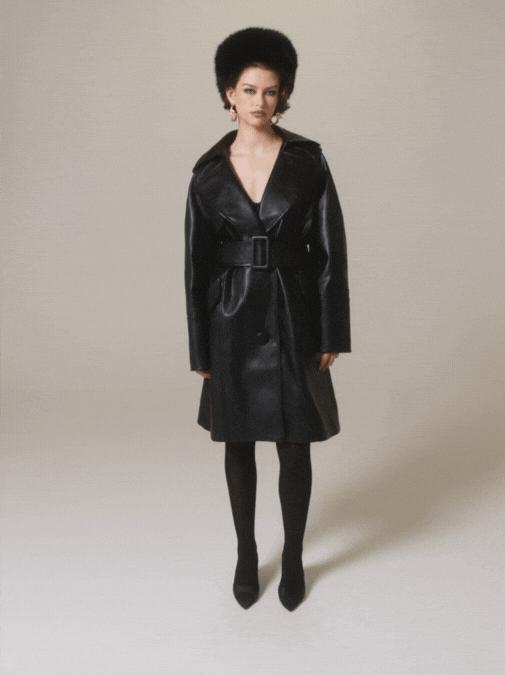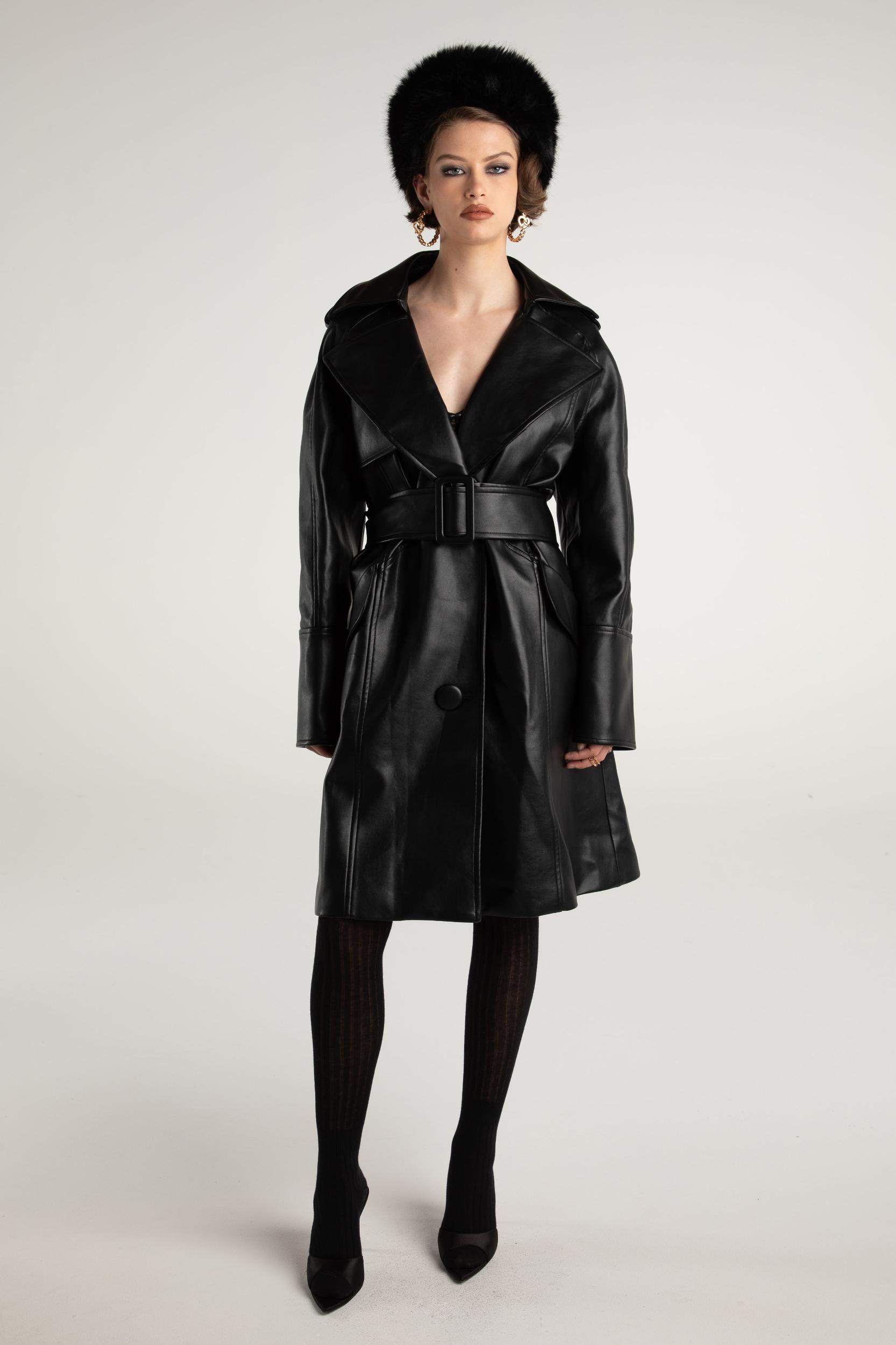 Invest in a smooth, buttery soft leather trench for all your daily errands. The Keira Trench Coat is made of high-quality, environmentally-friendly leather and reaches the knee for a true trench experience. The fabric is soft to the touch and durable, to serve you all season long. Leather trench coat Windbreaker material Knee-length Wide belt with buckle Dry clean only