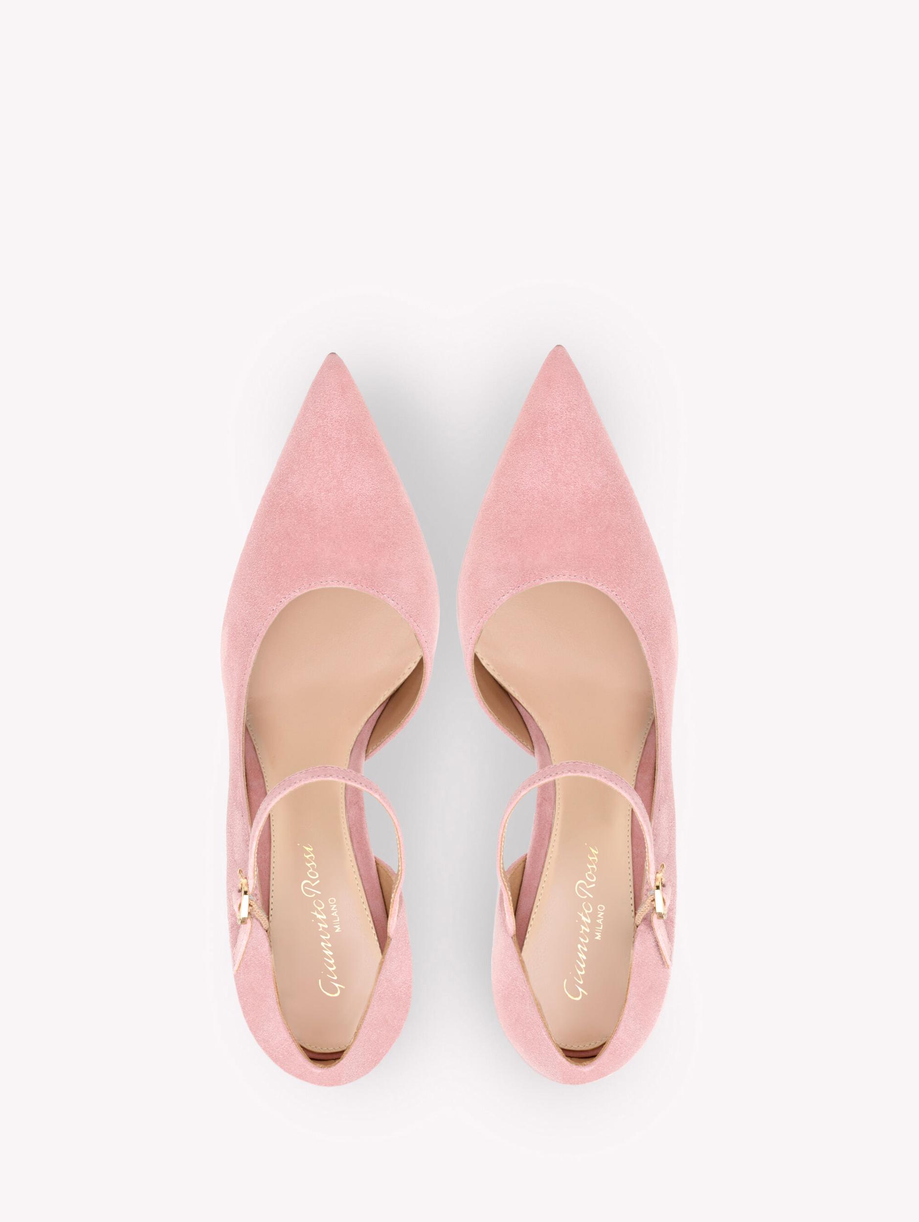 Crafted from supple suede, Kelley is a pointed-toe pump with an asymmetrical design and an 85mm stiletto heel. The front Mary Jane strap is finely embellished with the signature Ribbon buckle. Handmade in Italy.