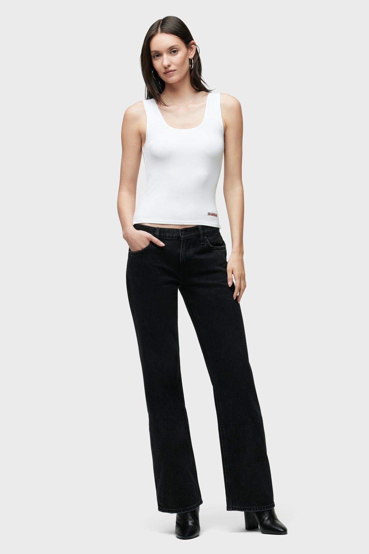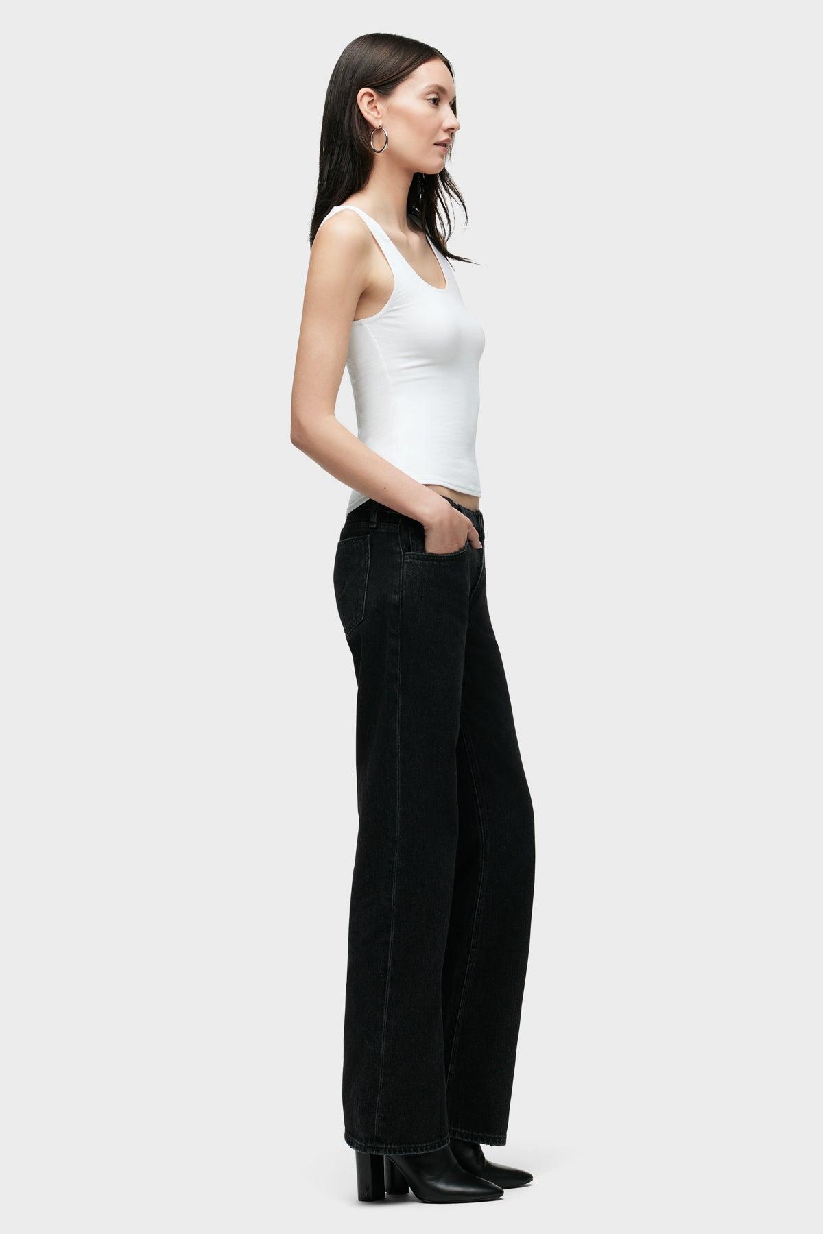 Description Our Kelli Low-Rise Loose Straight Jean is cut from premium rigid denim in washed down Stone Black. The fit is cut to hang loose at the hips with a relaxed look through the knees and thighs. Pair with matching Shacket for a complete look. Product Details Front Rise: 9.25", Leg Opening: 20", Inseam: 32"Model Height 5'9"Model wearing size 25Measurements based on size 27 Fit & Care Content: 100% CottonMachine wash cold with like colorsDo not bleachTumble dry low or hang to dry
