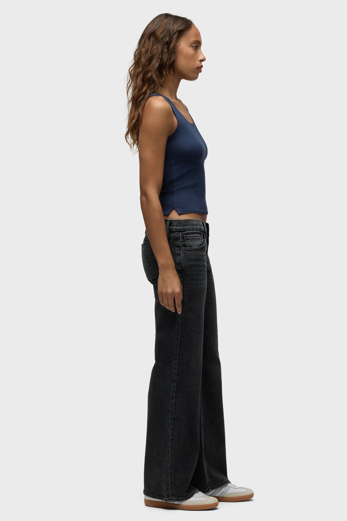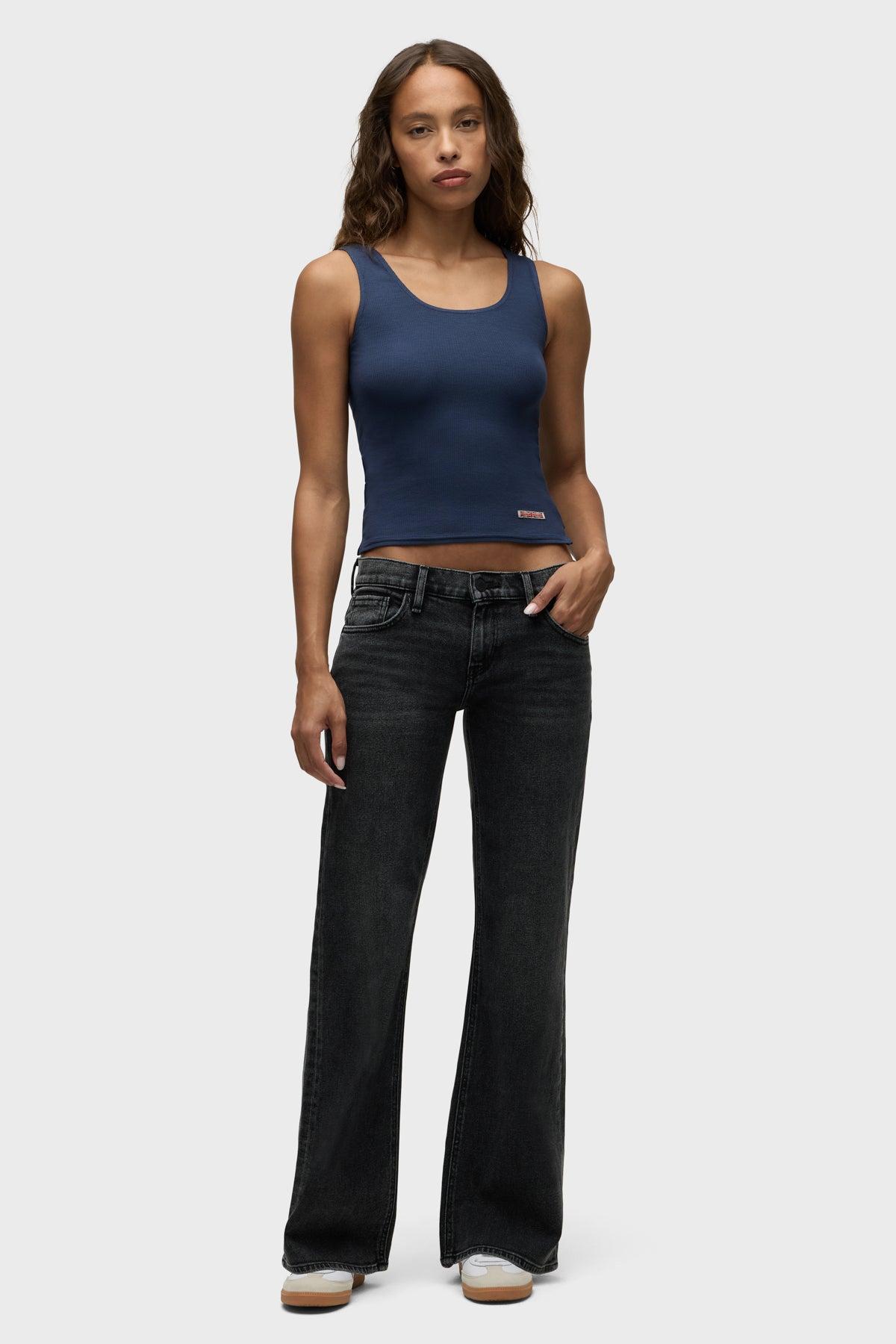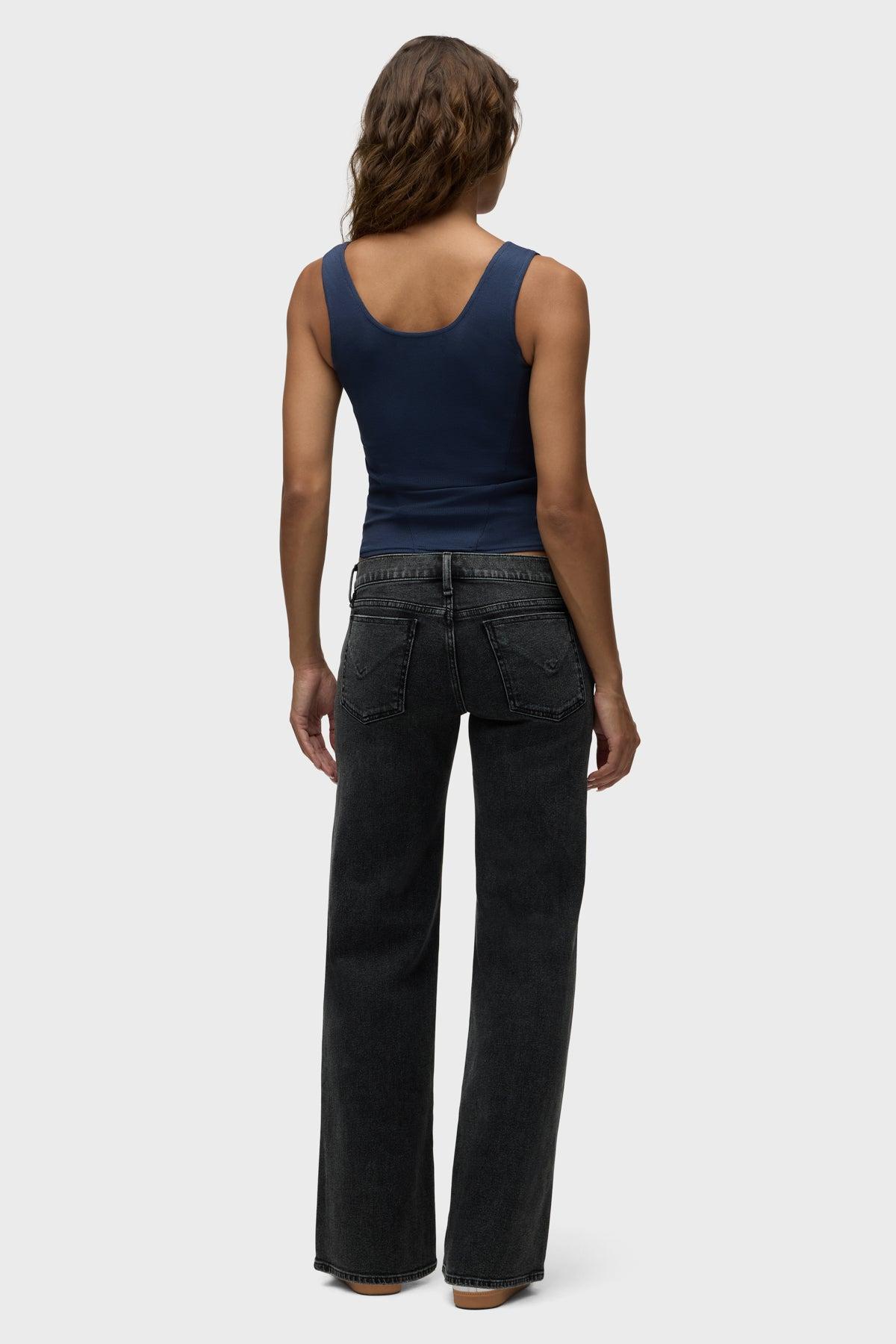 Description Our Kelli Low-Rise Loose Straight Jean is cut from premium stretch denim in washed-black Grander. The fit is cut to hang loose at the hips with a relaxed look through the knees and thighs. Product Details Front Rise: 9.25", Leg Opening: 20", Inseam: 32"Model wearing size 25Measurements based on size 27 Fit & Care Content: 95% Cotton, 4% Elastomultiester, 1% ElastaneMachine wash cold with like colorsDo not bleachTumble dry low or hang to dry