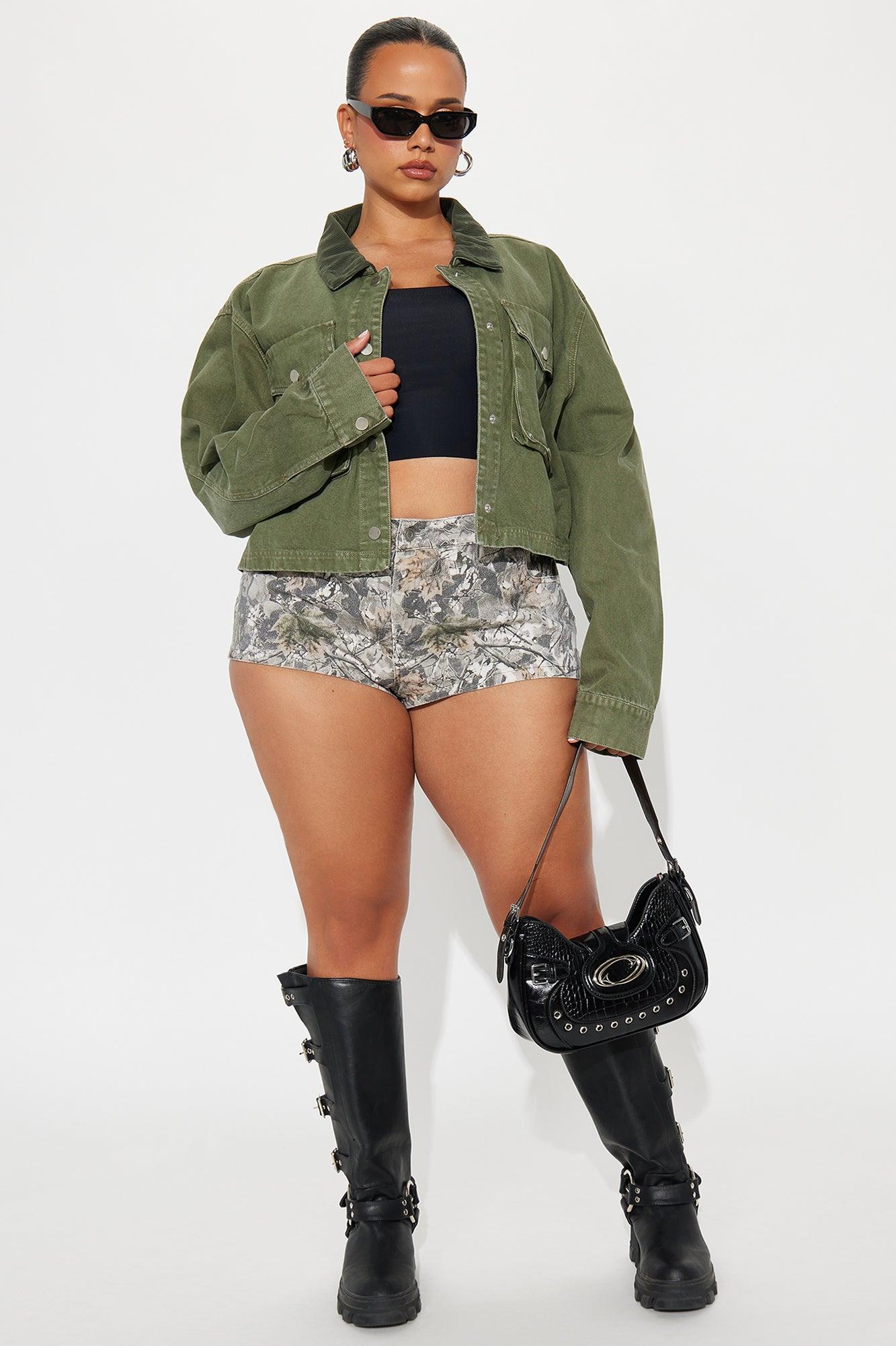 Available In Green/combo. Micro Short Button and Zip Closure High Rise Twill Rigid 1" inseam Camo Print Hand Pockets Back Pockets Non Stretch Self: 100% Cotton Lining: 100% Polyester Imported California Proposition 65WARNING: Cancer and Reproductive Harm - www.P65Warnings.ca.gov.