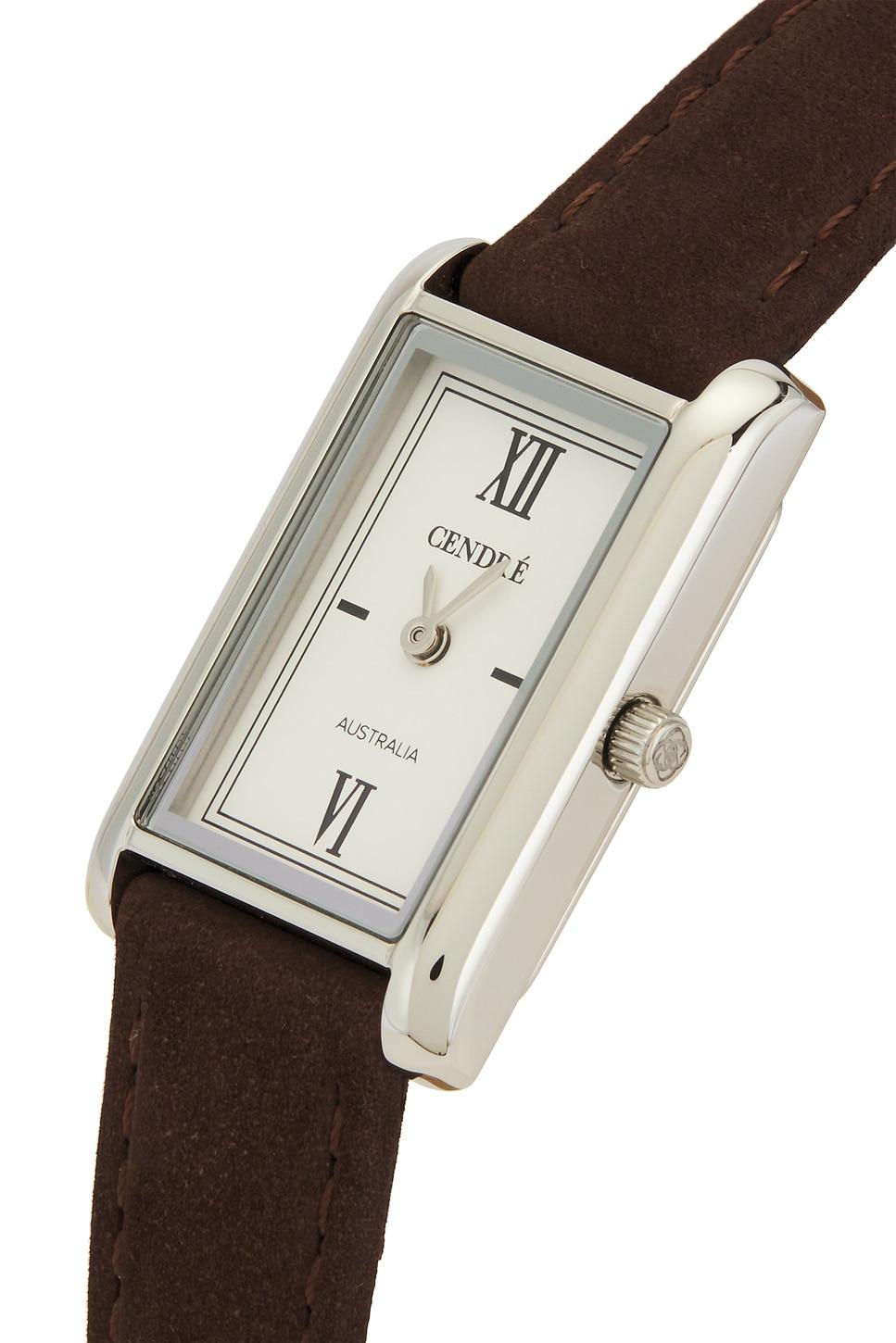 High polished stainless steel. Silver-tone buckle closure. 13mm genuine Italian suede leather band. Miyota Japanese quartz movement. 30mm x 18mm watch face. Made in China. Revolve Style No. CENR-WL67. Manufacturer Style No. CEN416.