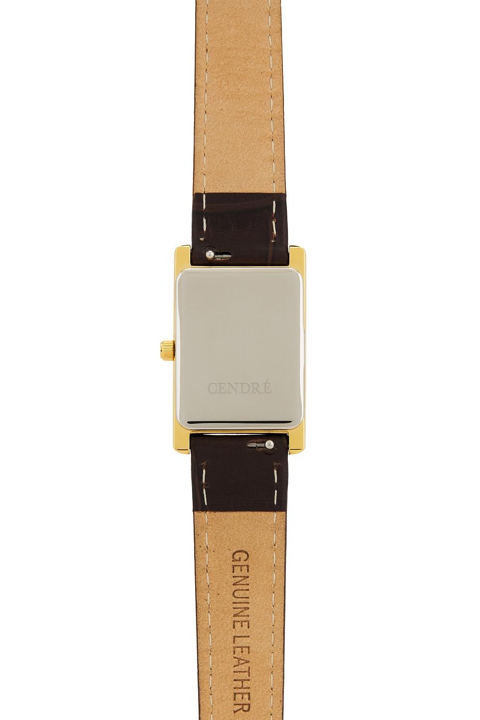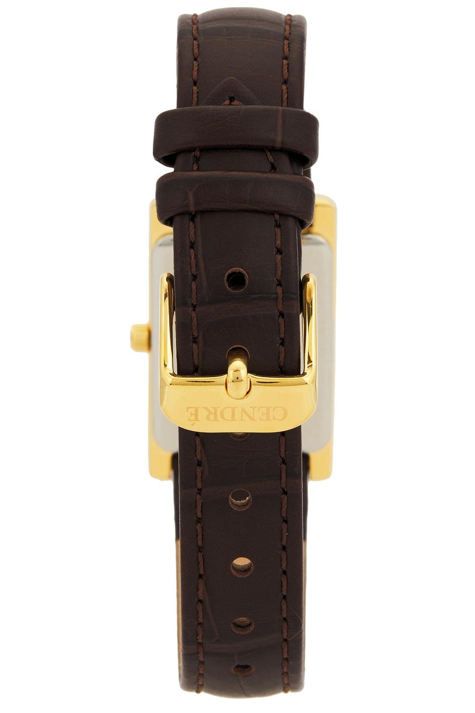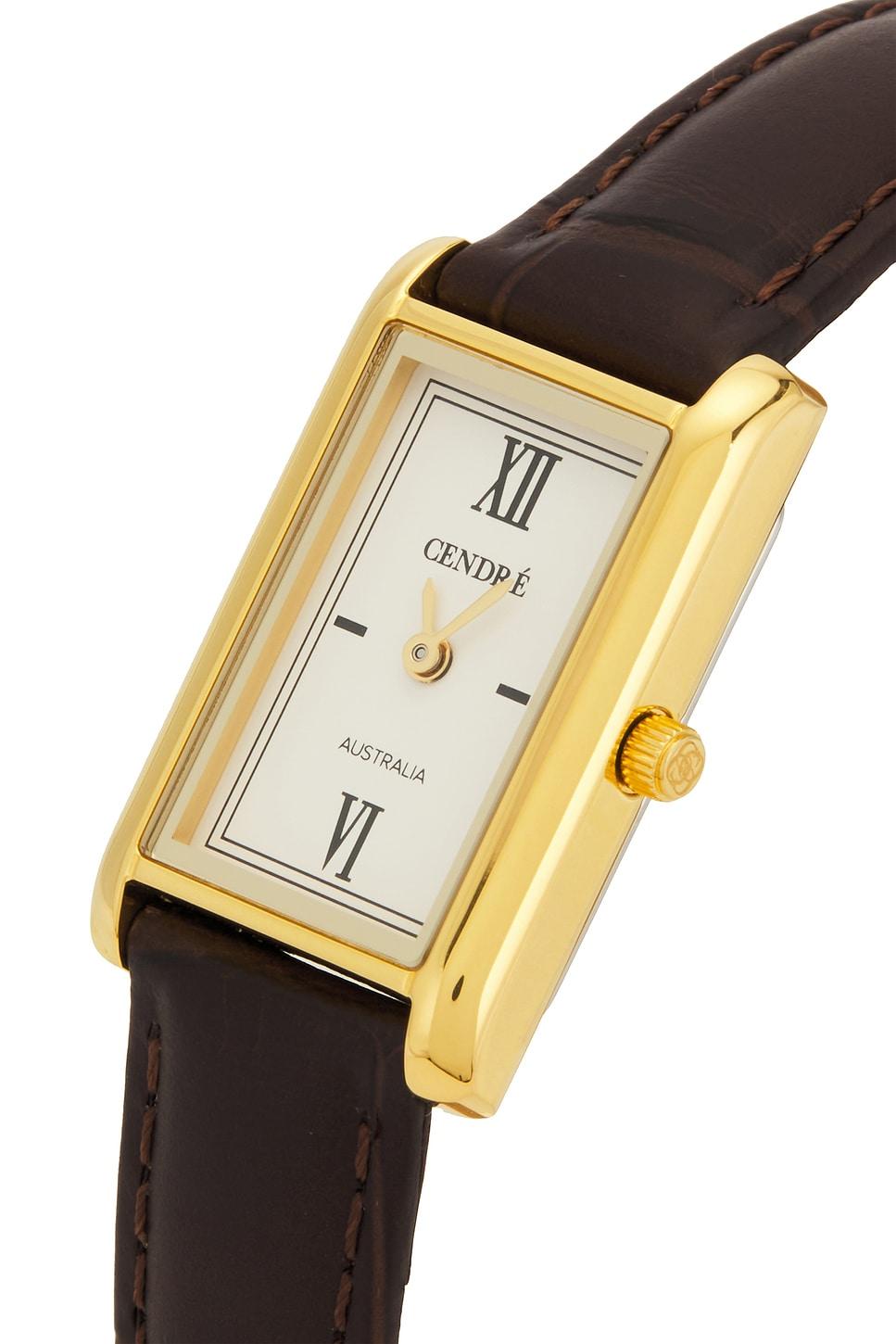Premium 18k gold-plated stainless steel. Gold-tone buckle closure. 13mm genuine Italian croc embossed leather band. Miyota Japanese quartz movement. 30mm x 18mm watch face. Made in China. Revolve Style No. CENR-WL66. Manufacturer Style No. CEN414.