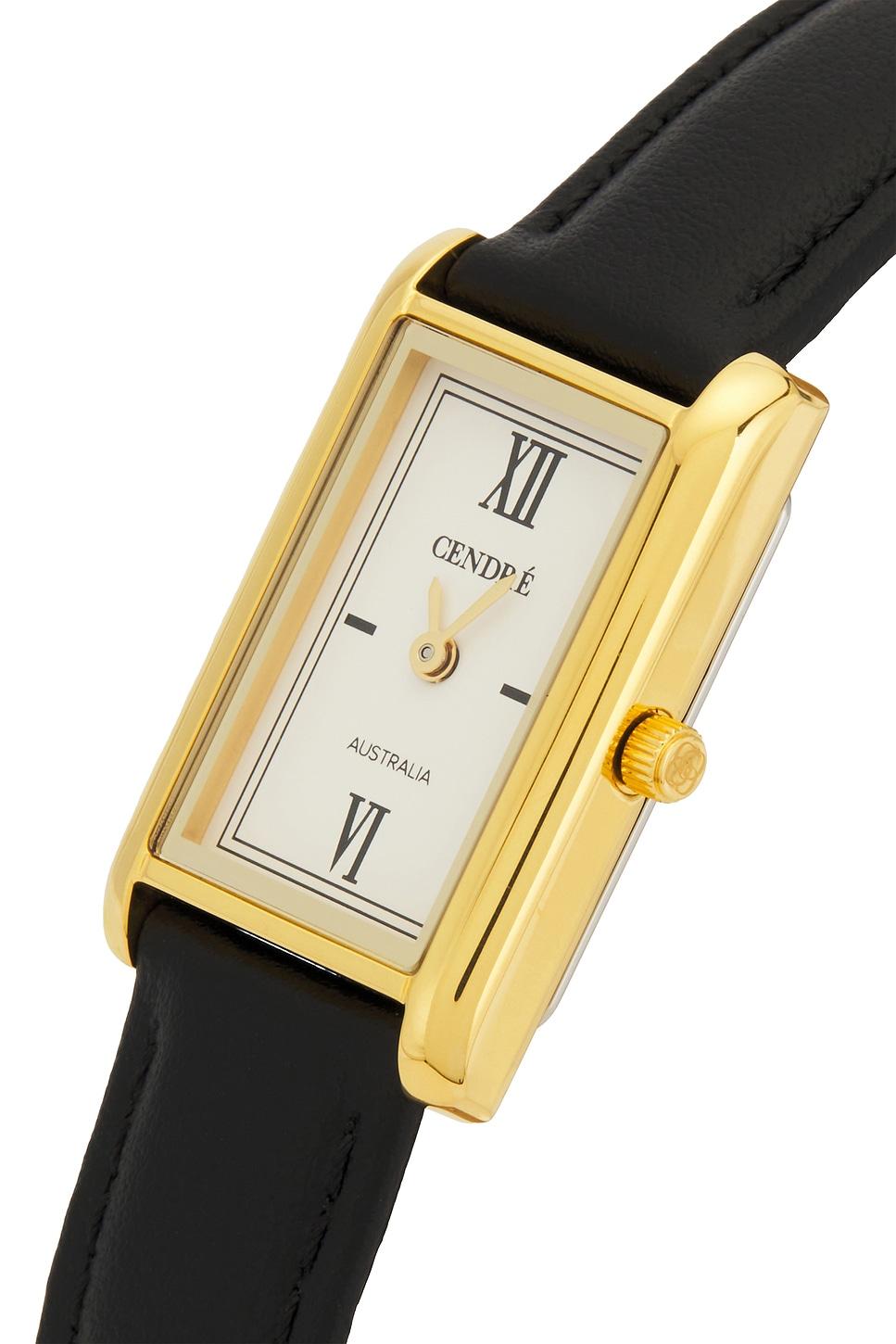 Premium 18k gold-plated stainless steel. Gold-tone buckle closure. 13mm genuine Italian smooth leather band. Miyota Japanese quartz movement. 30mm x 18mm watch face. Made in China. Revolve Style No. CENR-WL64. Manufacturer Style No. CEN412.