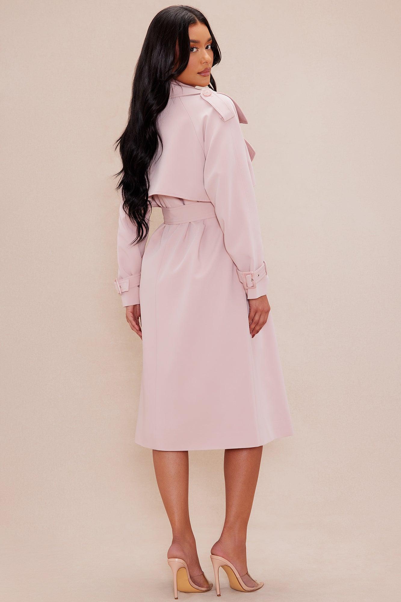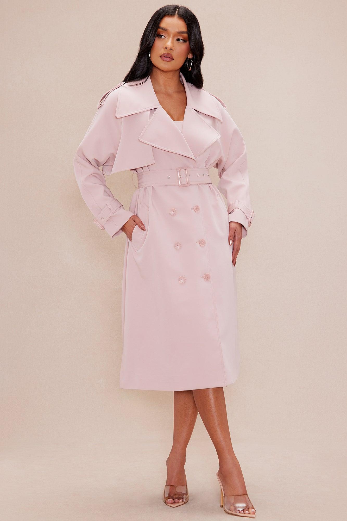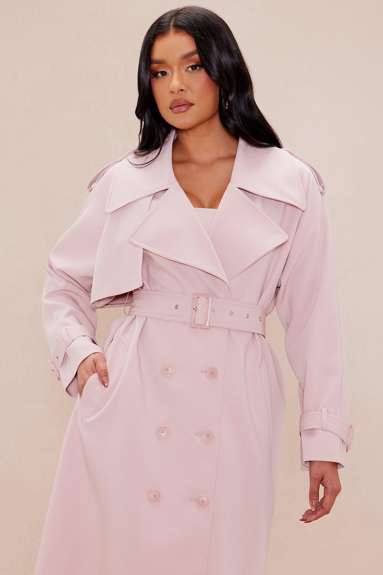 Available In Pink. Trench Coat Collar Long Sleeve Belted Front Button Closure Lined No Stretch Self: 92% Polyesters, 8% Spandex Lining: 100% Polyester Imported California Proposition 65WARNING: Cancer and Reproductive Harm - www.P65Warnings.ca.gov.