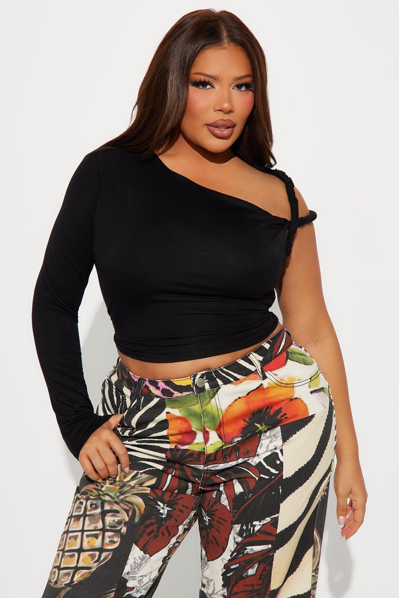 Kendra One Shoulder Long Sleeve Top - Black