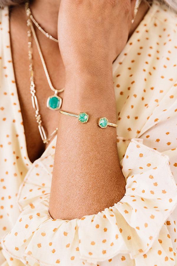 Looking for a new everyday addition to your stack? Try the Davie Gold Cuff Bracelet in Dark Teal Amazonite, bookended by two bold faceted stones that define signature Kendra Scott design.