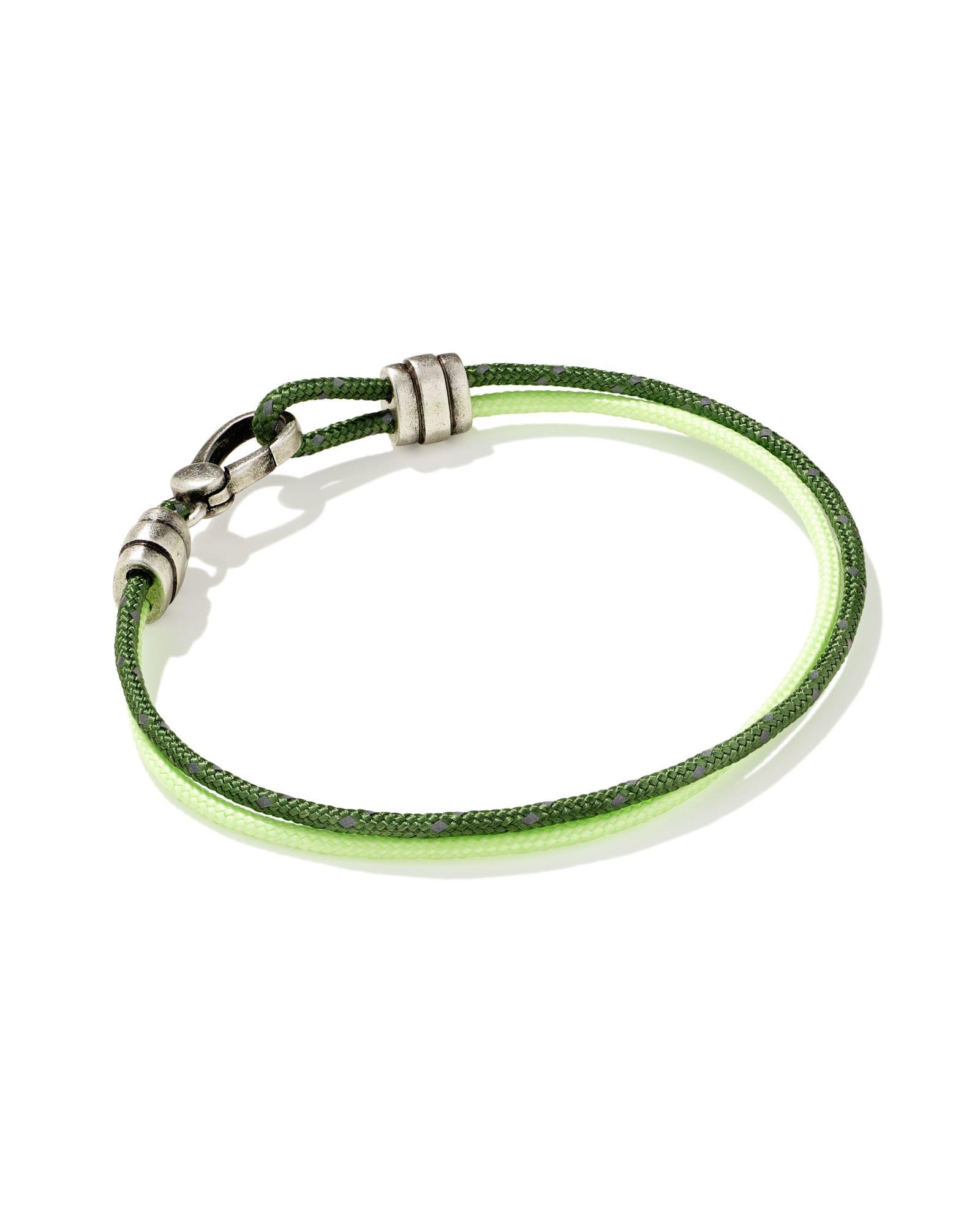 Made from long-lasting paracord and Oxidized Sterling Silver, this low-maintenance bracelet is an effortless addition to your day-to-day look. Mix with multiple bracelets for a complementary combo of color and texture.,MetalOxidized Sterling SilverWhy Sterling Silver?When properly cared for, Sterling Silver is appropriate for everyday wear with a longer expected lifetime than fashion jewelry. Learn More About Metals & CareMaterialGlow in the Dark Mix Paracord Size8.25 inner circumferenceClosureLobster clasp Please note: Due to the one-of-a-kind nature of the medium, exact colors and patterns may vary slightly from the image shown.} Kendra Scott Kenneth Oxidized Sterling Silver Corded Bracelet in Glow in the Dark Mix Paracord