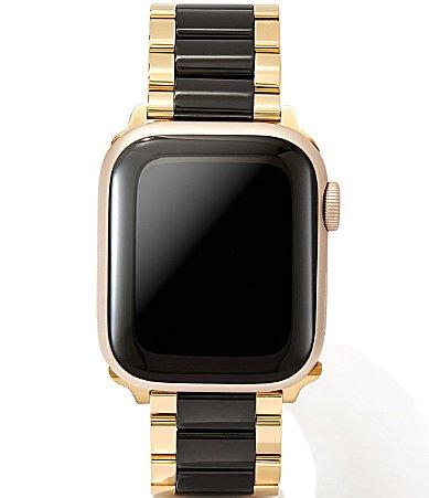 From Kendra Scott, the Womens Dira 5 Link Gold & Black Stainless Steel Bracelet Apple Watch Band features:Gold and black tone stainless steelButterfly clasp closure Compatible with Apple Watch Series 1-8 and any Samsung Galaxy Watch with 20mm strapsStrap width 20mm tapers to 16mmStrap length approx. 6.97 - 5.55 Imported.