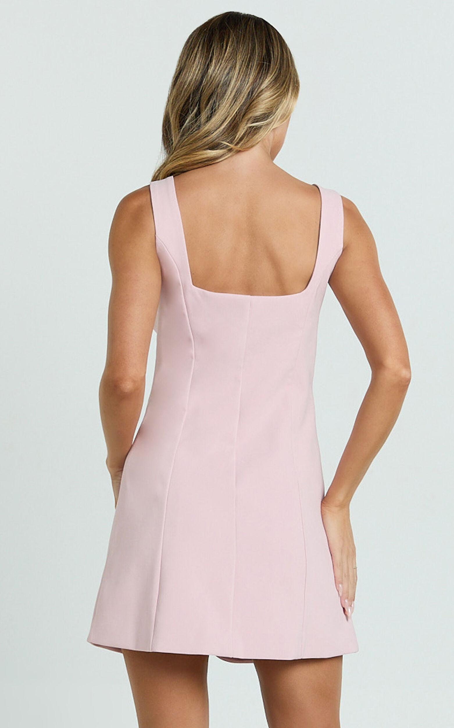 Kenna Mini Dress - Square Neck Button Down Mini Dress in Pink