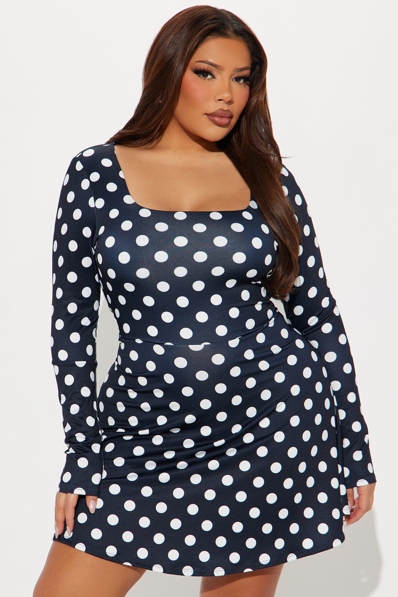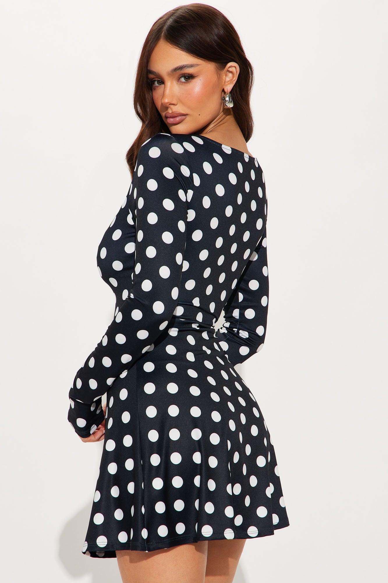 Available In Brown/combo And Black/combo. Polka Dot Mini Dress Square neck Long sleeve Stretch Length measured flat = 32" Disclaimer: Print Placement May Vary Self: 93% Polyester 7% Spandex Imported California Proposition 65WARNING: Cancer and Reproductive Harm - www.P65Warnings.ca.gov.