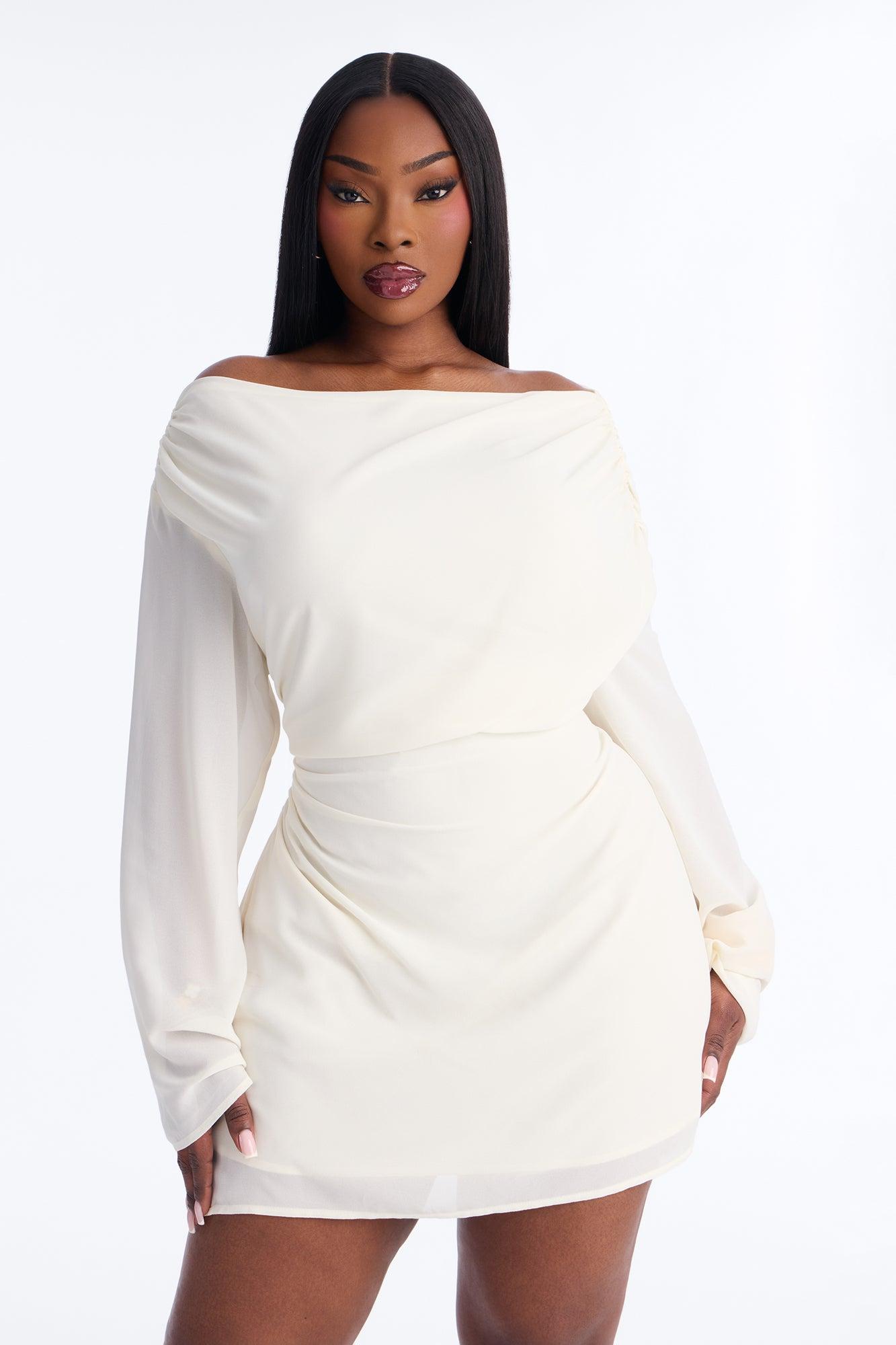 Kennedy Long Sleeve Chiffon Mini Dress - Ivory