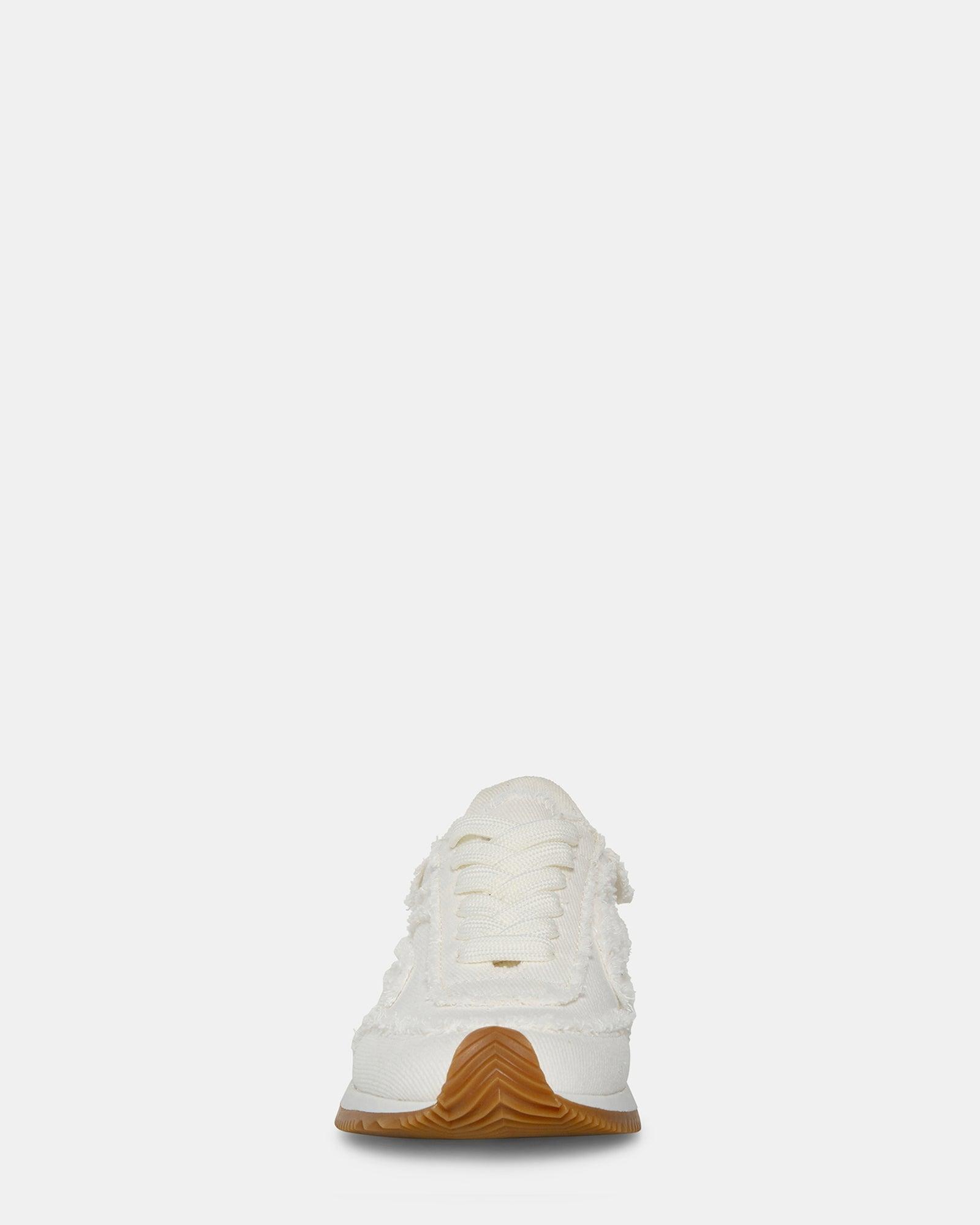 CHILL + SPORTY + CASUALThe KENNIE sneaker is a low top style with a low wedge sole finished with contrast treads that extend up the back of the heel and over top the toe. Low top fashion sneaker Laced closure Treaded outsole extends up heel and toe 1 inch heel height Textile upper material Textile lining Vegan leather sock Synthetic sole Imported