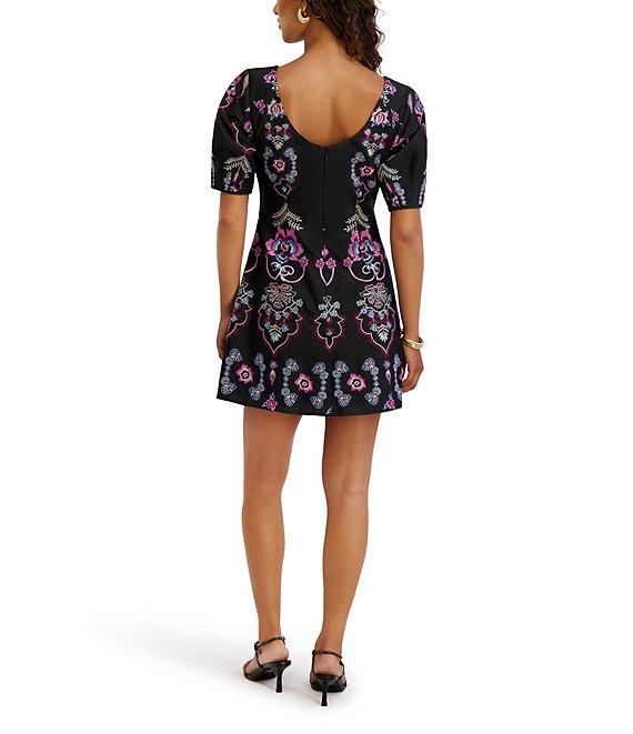 Kensie Embroidered Short Sleeve Fit And Flare Mini Dress