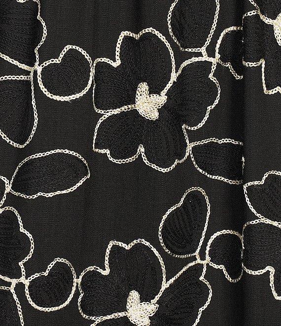 Kensie Plus Size Floral Print Embroidered Lurex Woven V-Neck Knot Twist Short Sleeve Maxi Dress