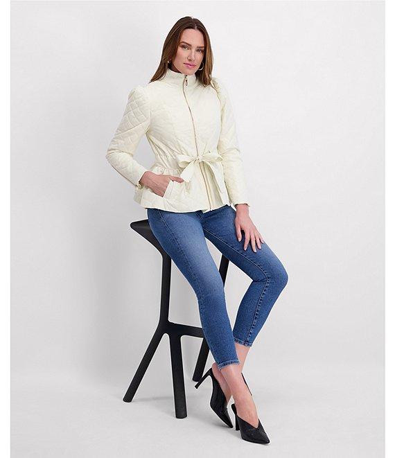 From Kensie, this coat features: Quilted fabrication Trench silhouette Funnel neckline Long sleeves Welt pockets Self tie belt Water resistance Fitted fit Fully lined Ruffle hemline Zip front closure Polyester; lining: polyester Machine wash Imported.
