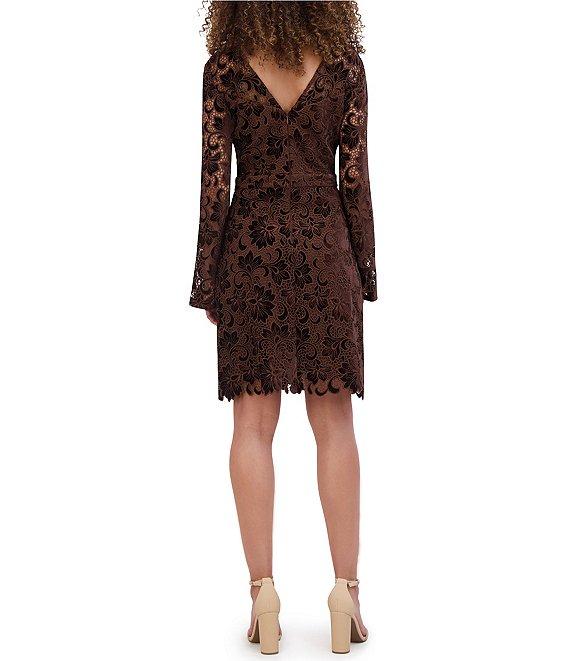 Kensie Velvet Lace V-Neck Long Bell Sleeve Mini Dress
