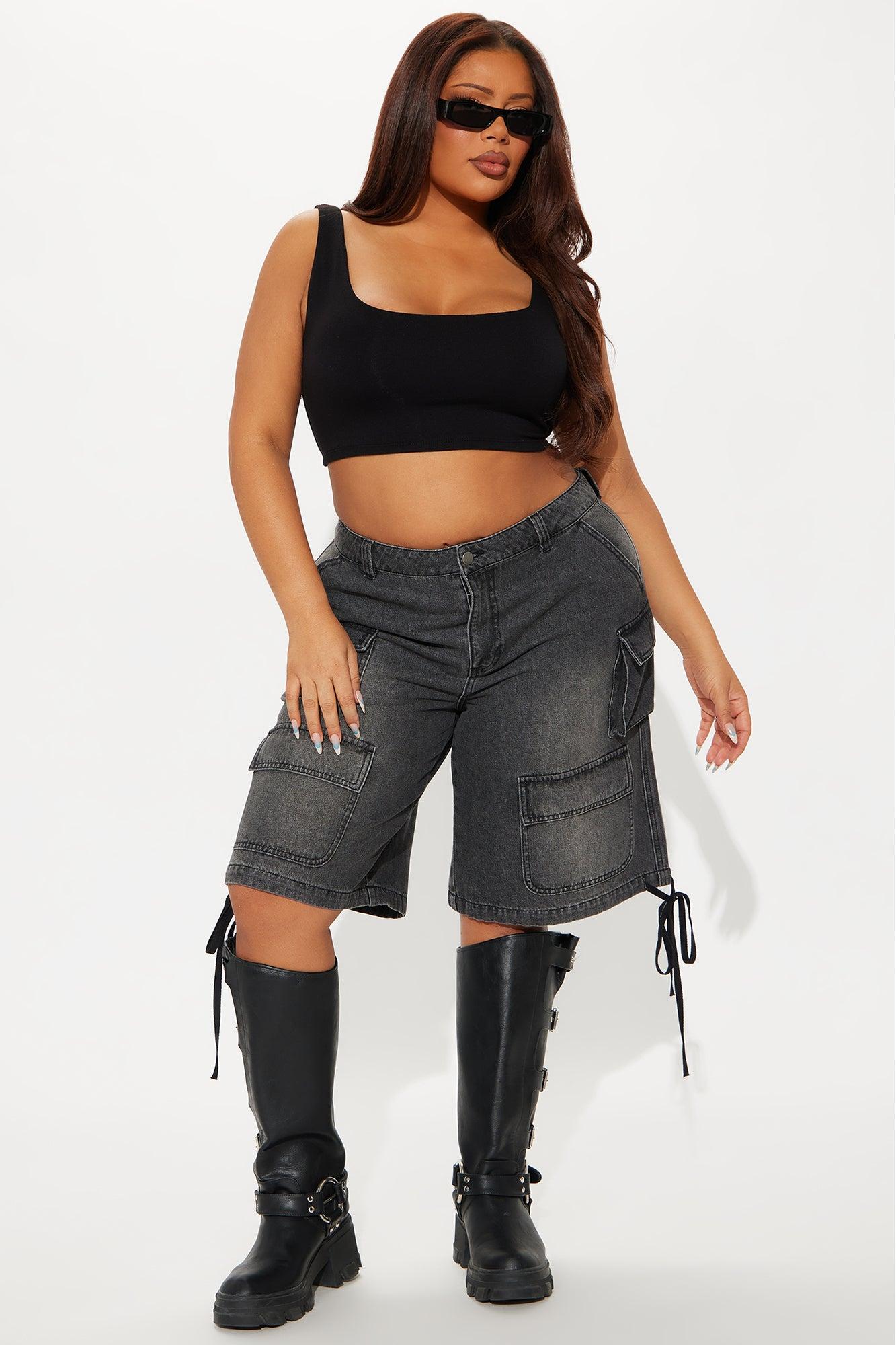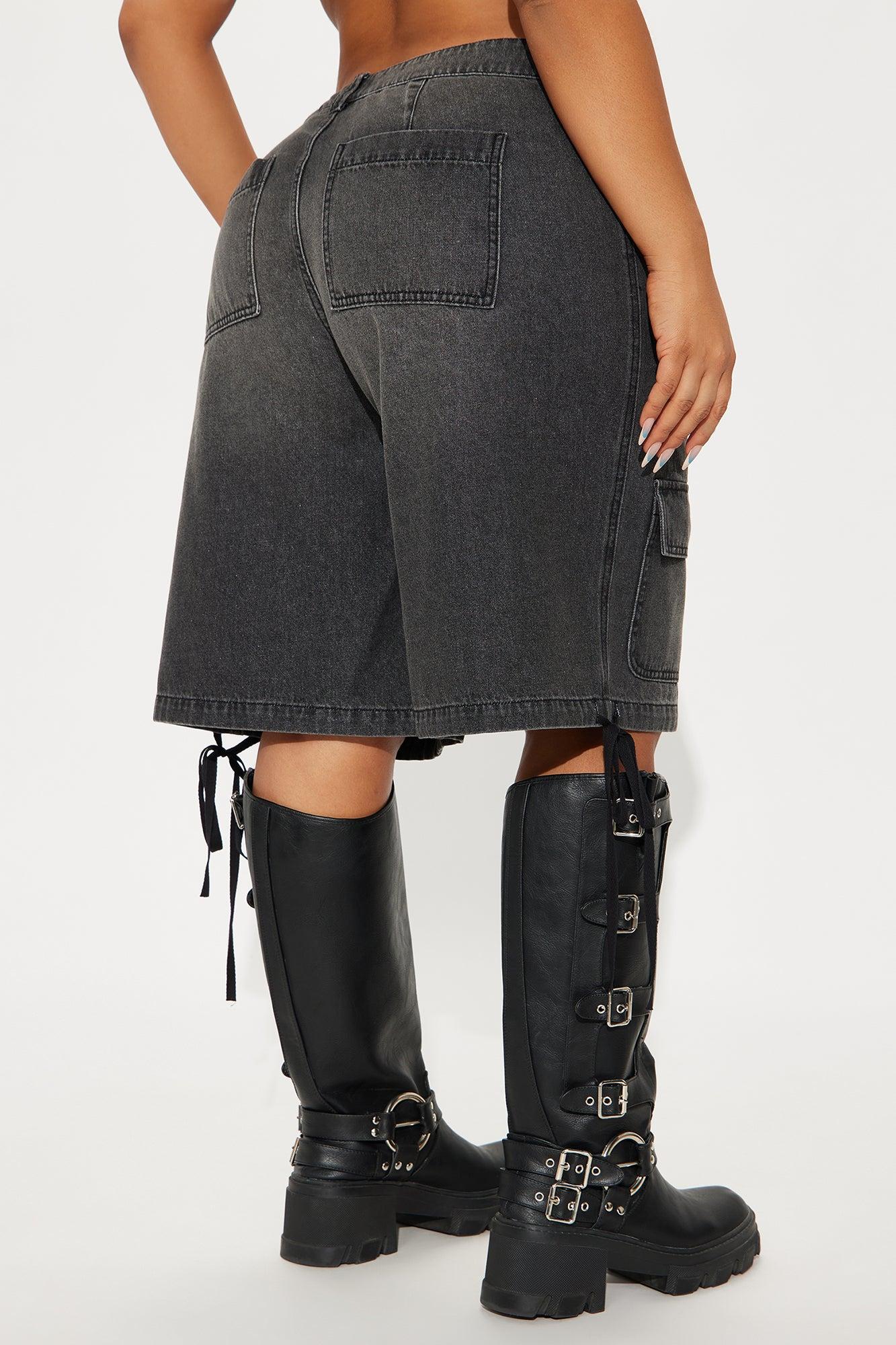 Available In Grey And Medium Wash. Denim Short Functional Cargo Pockets Adjustable Drawstring Hem 10.5" High Rise 12" Inseam Non Stretch Disclaimer: Due To The Specialized Wash Process, Each Garment Is Unique. 73% Cotton 12% Polyester 12% Viscose 3% Lyocell Imported
