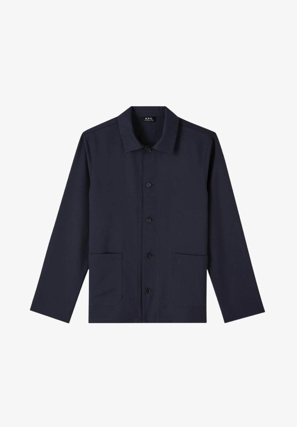 A.P.C. Men's jacket. - Flowing material. - Straight cut. - Topstitched classic collar. - Closes with five buttons. - Two pockets at the bottom of the jacket. - Unlined.
