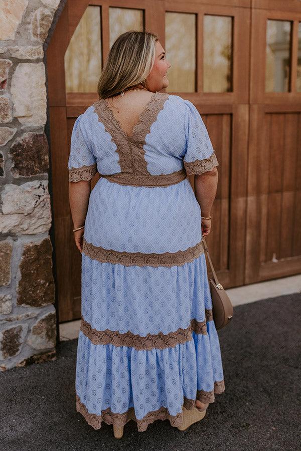- Get swept away in a romantic moment in this sweet maxi! Featuring delicate lace and a flowy fit, it's the perfect choice for brunch dates, vineyard visits, and capturing effortless elegance. - Fully lined lace material with a subtle floral design - A v-cut neckline and a v-cut back with scalloped detailing - Short sleeves with scalloped cuffs - Side zip closure under one sleeve - Hidden side pockets - Brown hued lace accents - A flowy and flattering silhouette that ends in a scalloped maxi length hemline