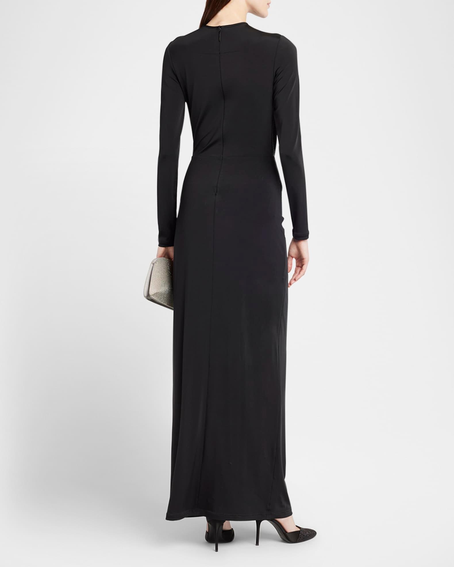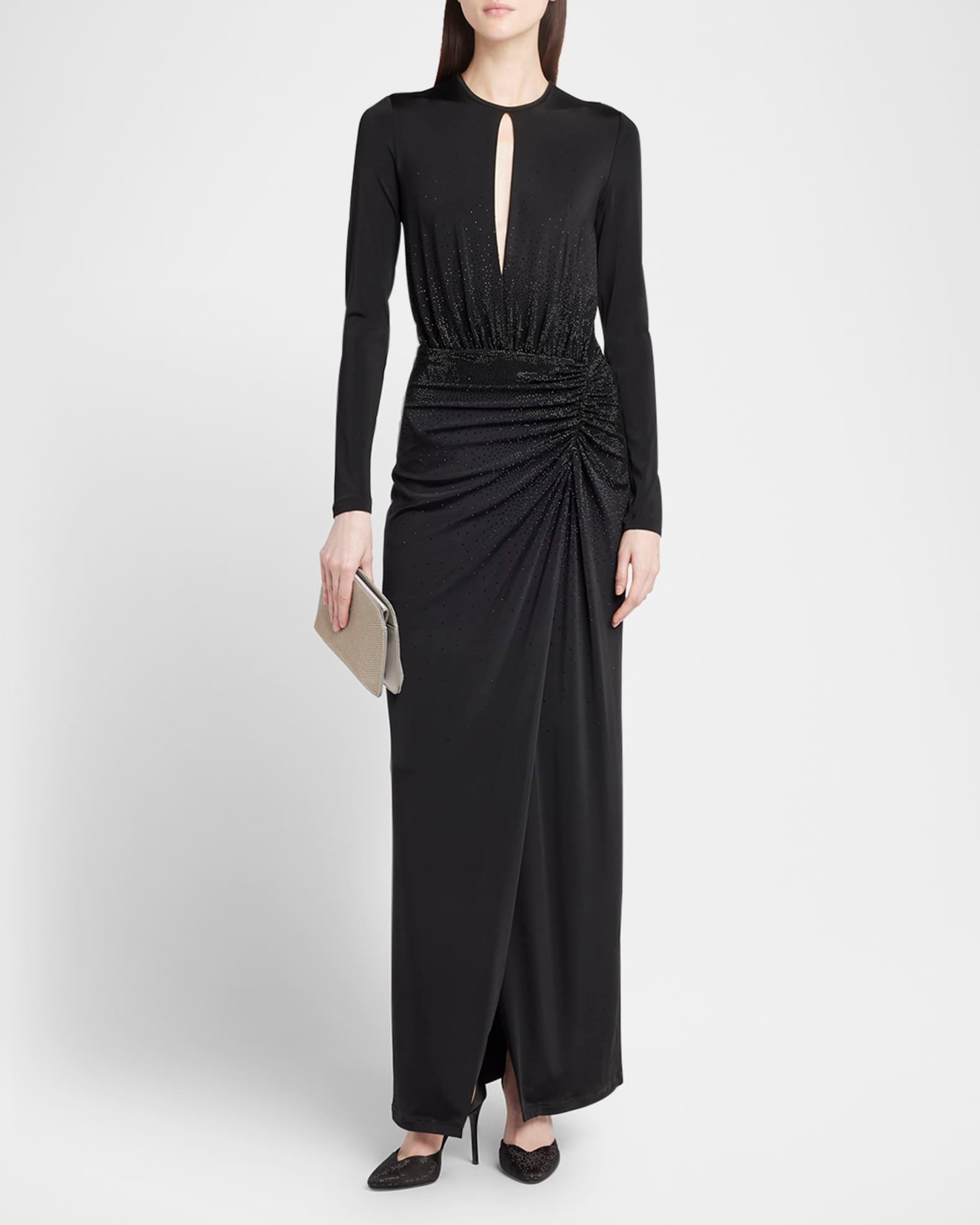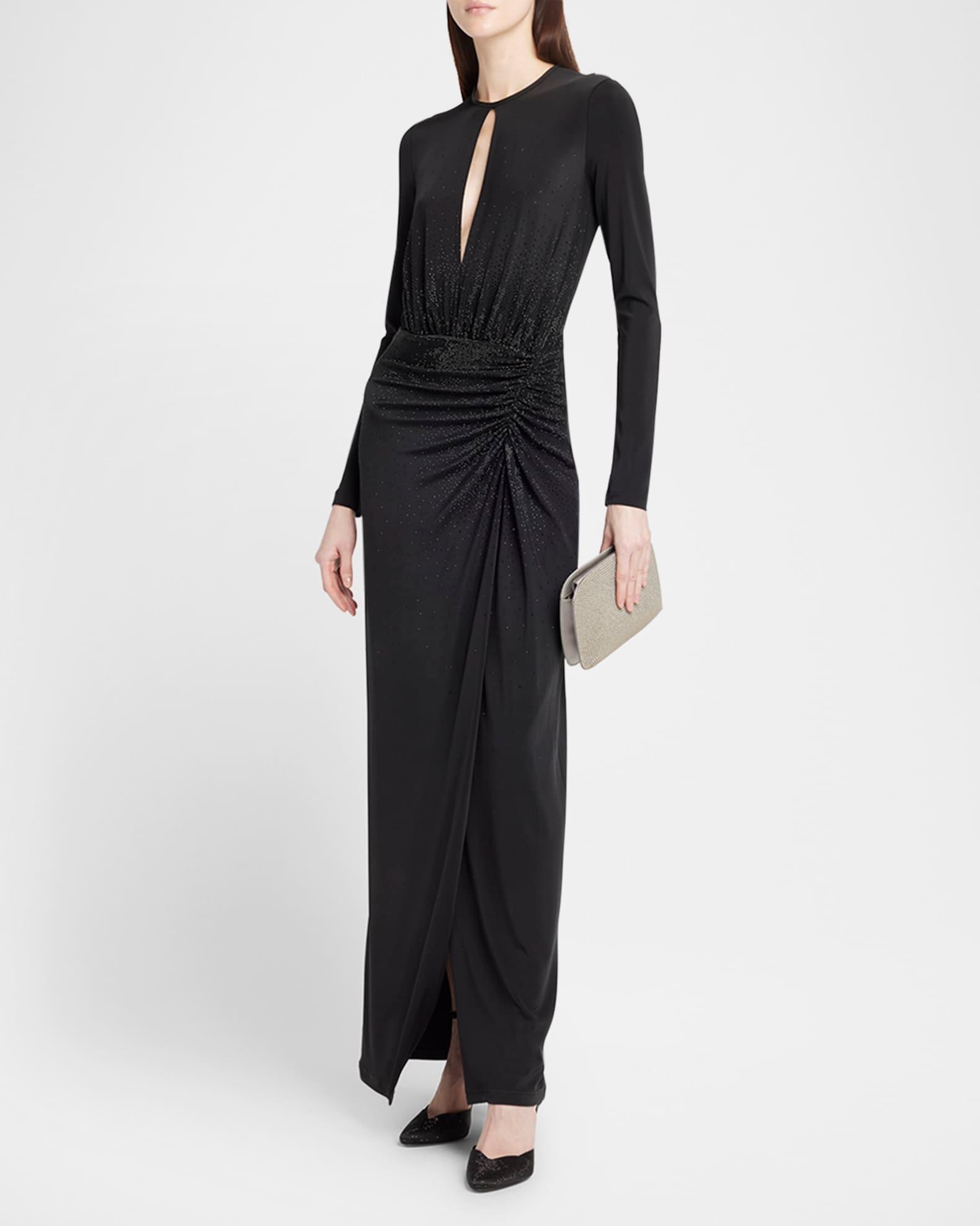 Keyhole Long-Sleeve Crystal Draped Jersey Gown