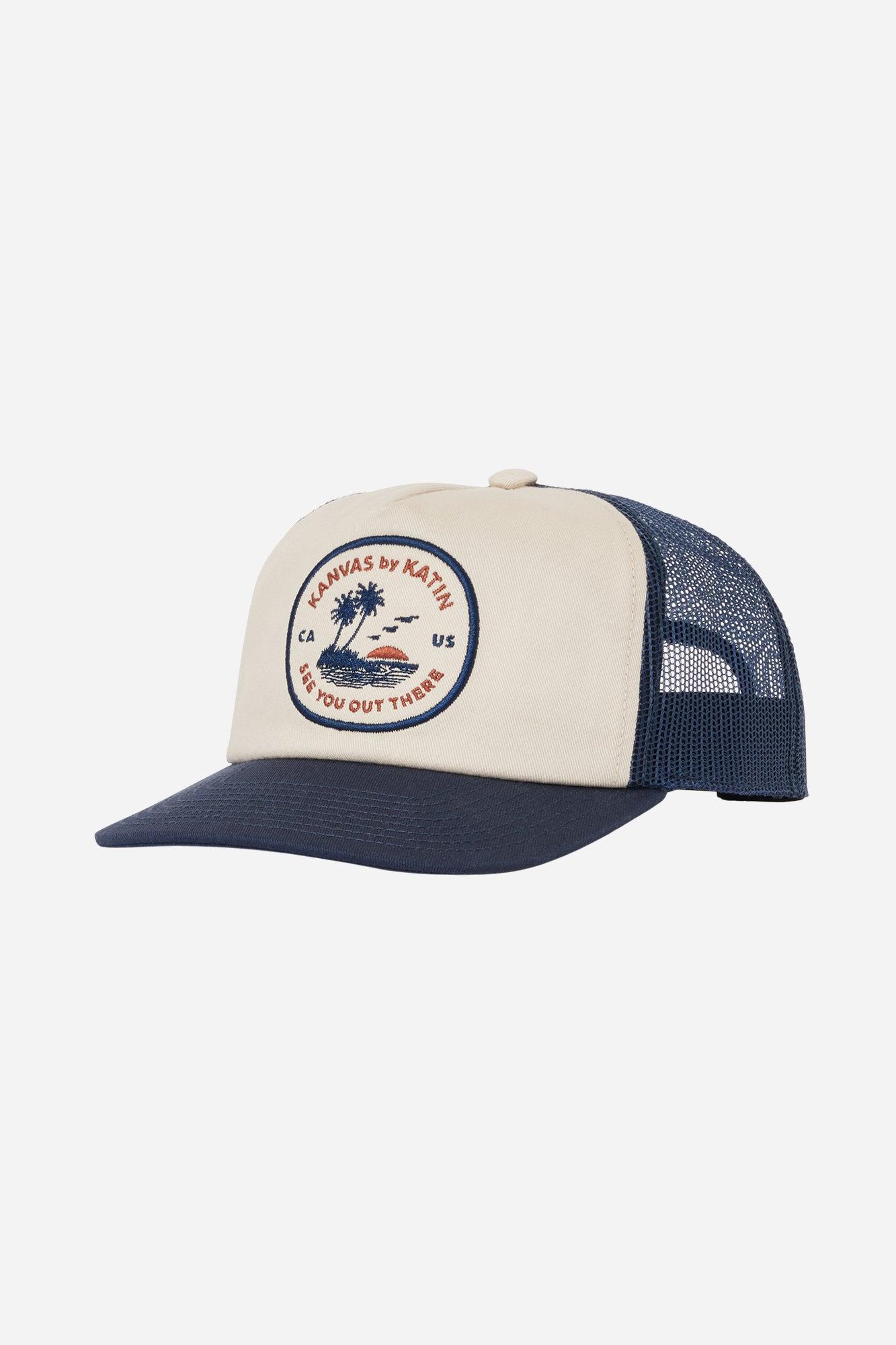 The Keys Trucker Hat features a custom scenic patch, the hat is made from cotton twill with a polyester mesh back and snapback closure. 60% Cotton Twill, 40% Polyester Mesh 5-panel trucker hat Mid-crown unstructured fit Snapback closure
