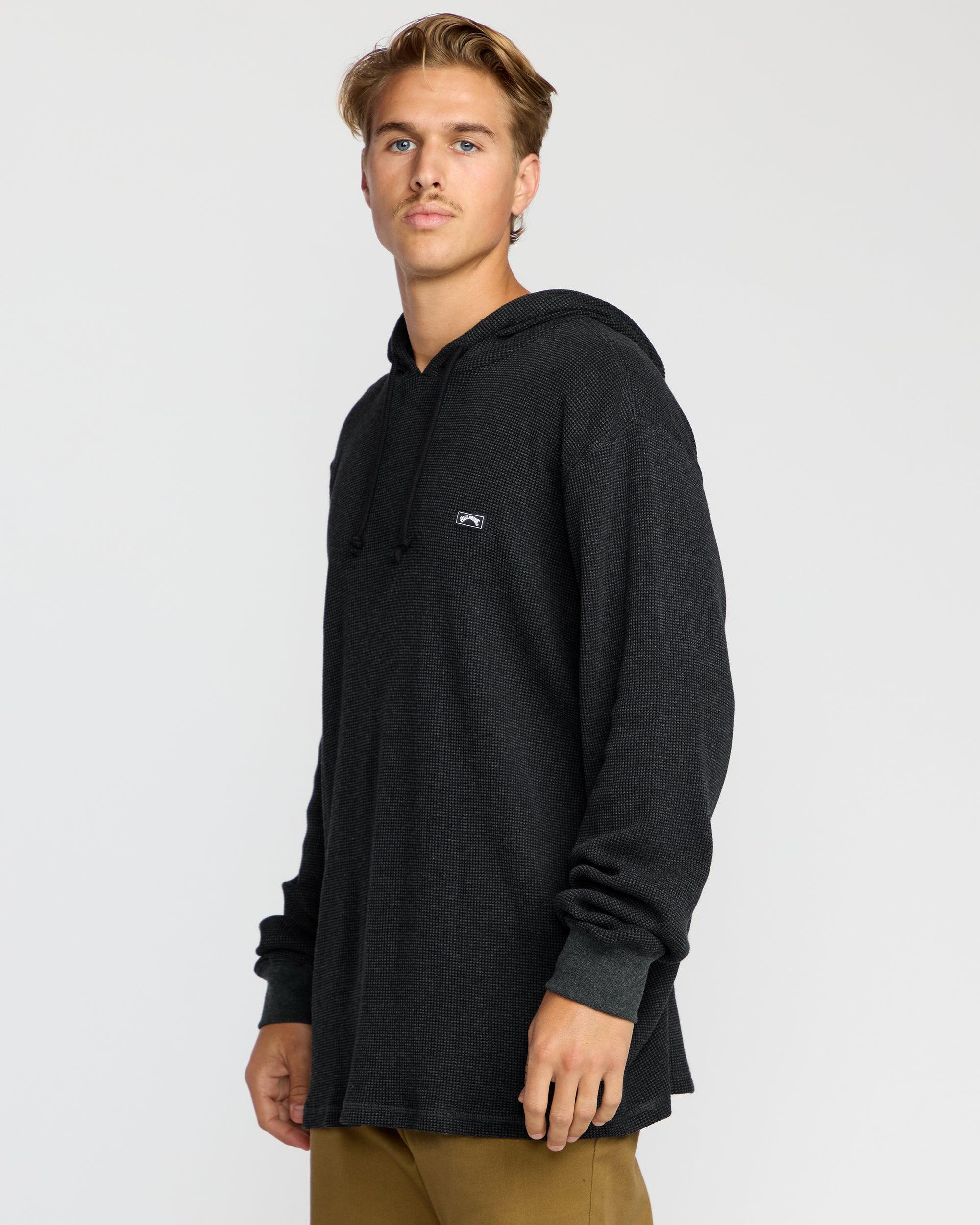 Find your adventure in the Keystone Hoodie from Billabong: a comfort-driven waffle knit thermal sweatshirt with matching hood drawcords and a small chest logo for a clean and classic look. Featured here in the Black colorway.Features Fabric: Cotton polyester waffle knit thermal blend fabric [250 g/m2]. Neck: Hooded neck. Closure: Pullover closure. Branding: Arch logo branding on chest. Other Features: Rib cuffs.
