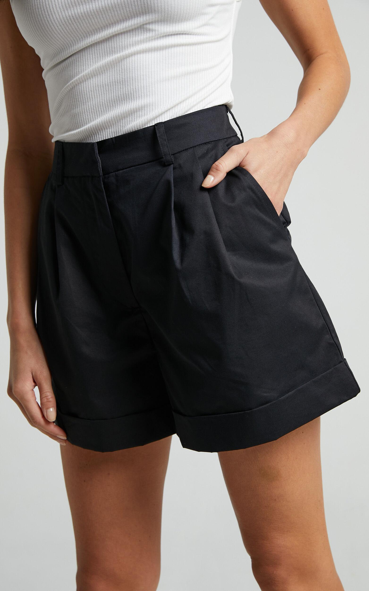 Add a touch of sophistication to your summer wardrobe with our Khaimy Shorts. These high-waisted, tailored shorts in classic black are the perfect addition to any casual ensemble. Made from 100% cotton, these shorts offer ultimate comfort and breathability for those warm days ahead. The cuffed hem adds a stylish twist to this timeless design, making them an essential piece for fashion-forward individuals like yourself. Whether you're heading out for brunch or lounging by the pool, our Khaimy Shorts will keep you looking effortlessly chic all season long.Product Details:Cotton tailored shortsCasual stylePerfect for summerSize and FitSize S / 8 length: 40cm / 15.75inMaterial and CareCottonLow / No stretch