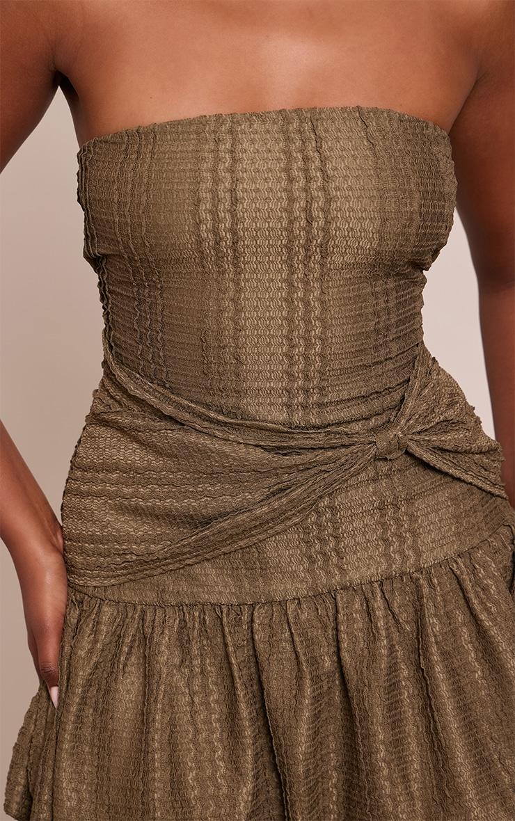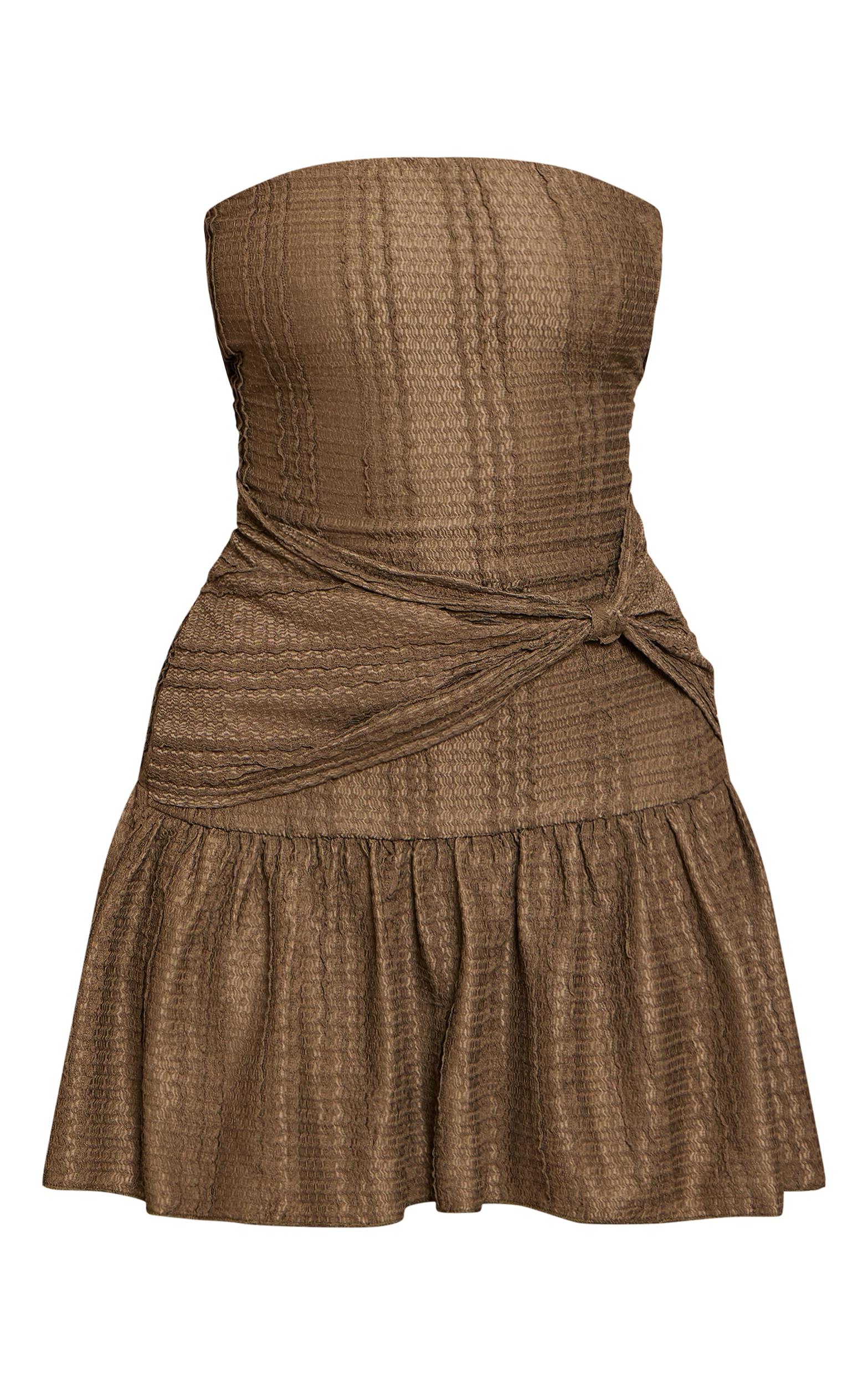 Stay stylish with the khaki bandeau twist mini shift dress. Made from a khaki woven material, it features a bandeau neckline, twist detail, and mini shift cut. Pair with kitten heels and gold earrings for timeless sophistication that will have you feeling confident this season and beyond.Length approx 81.5cm/32inch (Based on sample size US 4)Model wears size UK 8/ EU 36/ AUS 8/ US 4Model Height - 5ft 9inchp]:!mb-4inch>Brand: PrettyLittleThingCategory: DressesProduct type: Shift DressColor: KhakiMaterial: Slinky JerseyOccasion: Evening