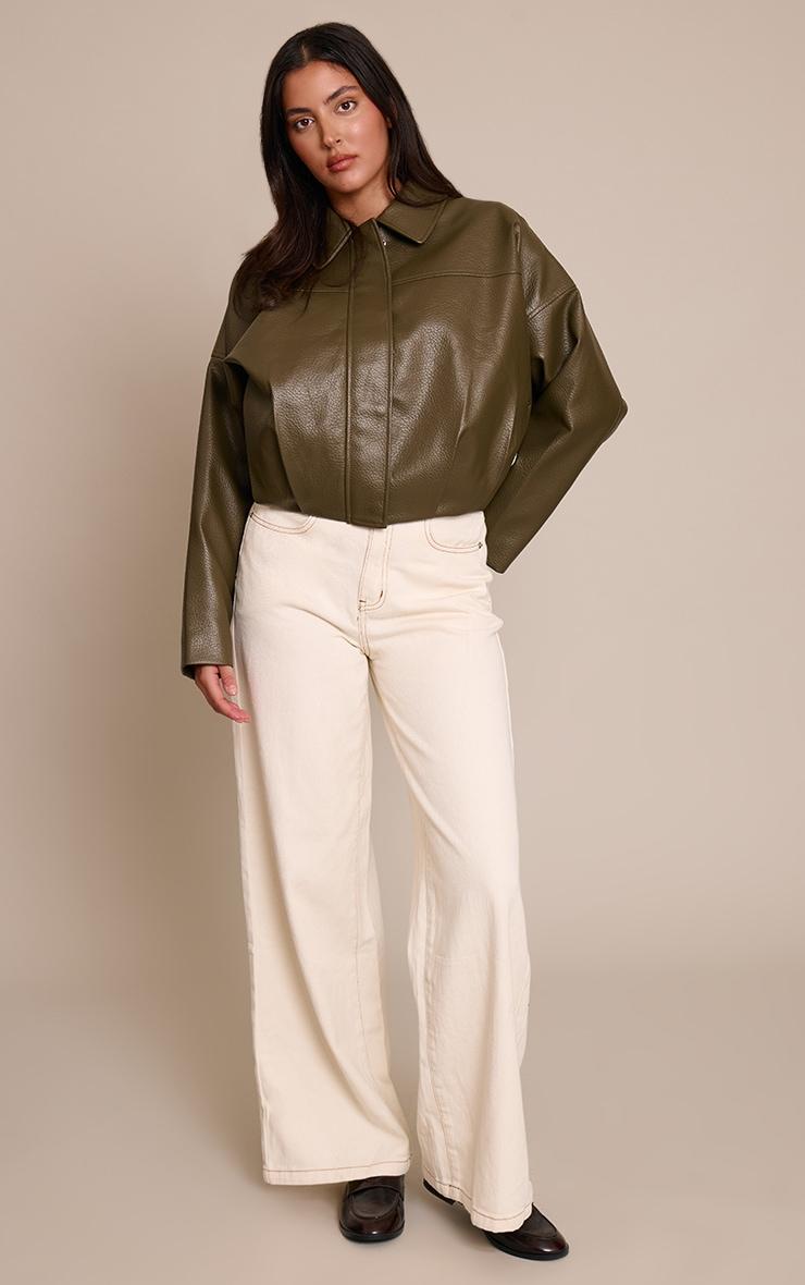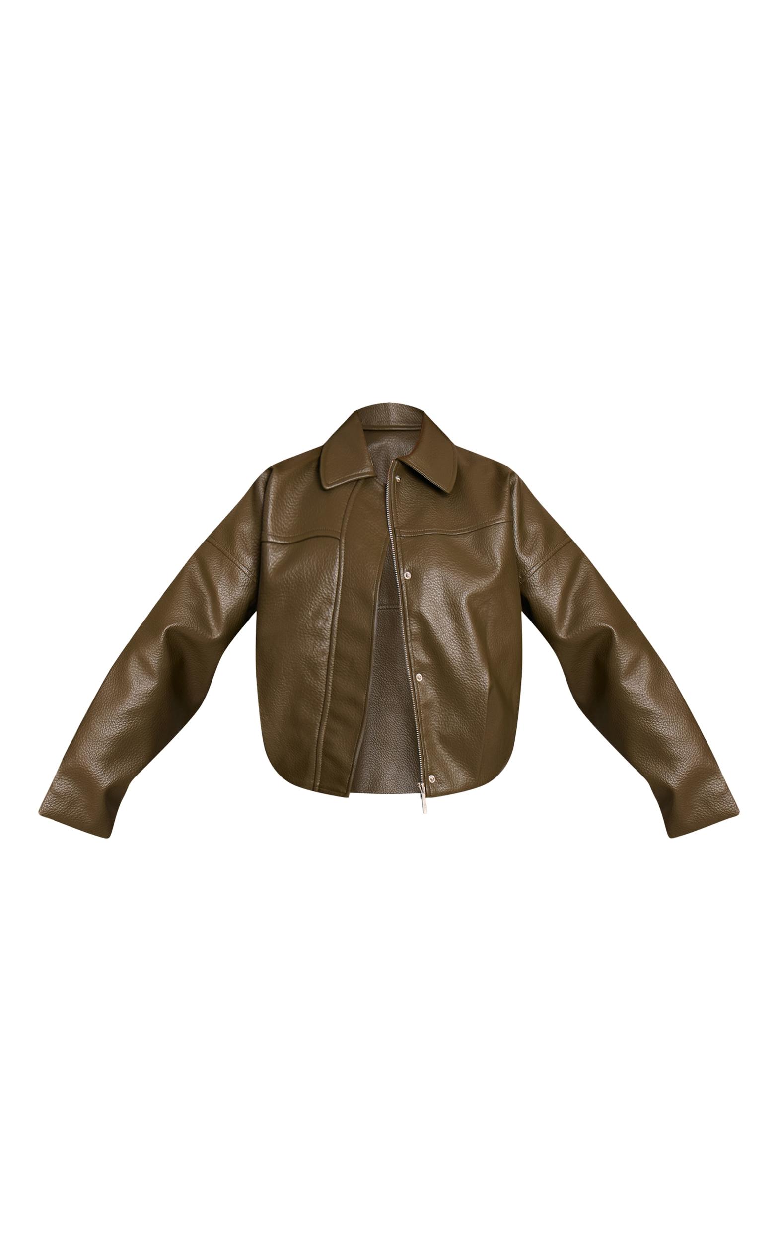 Command attention in the artful khaki faux leather covered placket bomber jacket. This cropped bomber boasts a sharp collar, sleek covered placket, and effortless fit. It’s an essential piece for confident daily styling, from city strolls to chic daytime events. Team with wide-leg pants, striking gold strappy heels, and refined gold jewelry.Length approx 48.5cm/19inch (Based on sample size S)Model wears size SModel Height - 5ft 9inchp]:!mb-4inch>Brand: PrettyLittleThingCategory: OuterwearProduct type: BomberColor: KhakiMaterial: Tailored WovenOccasion: Day