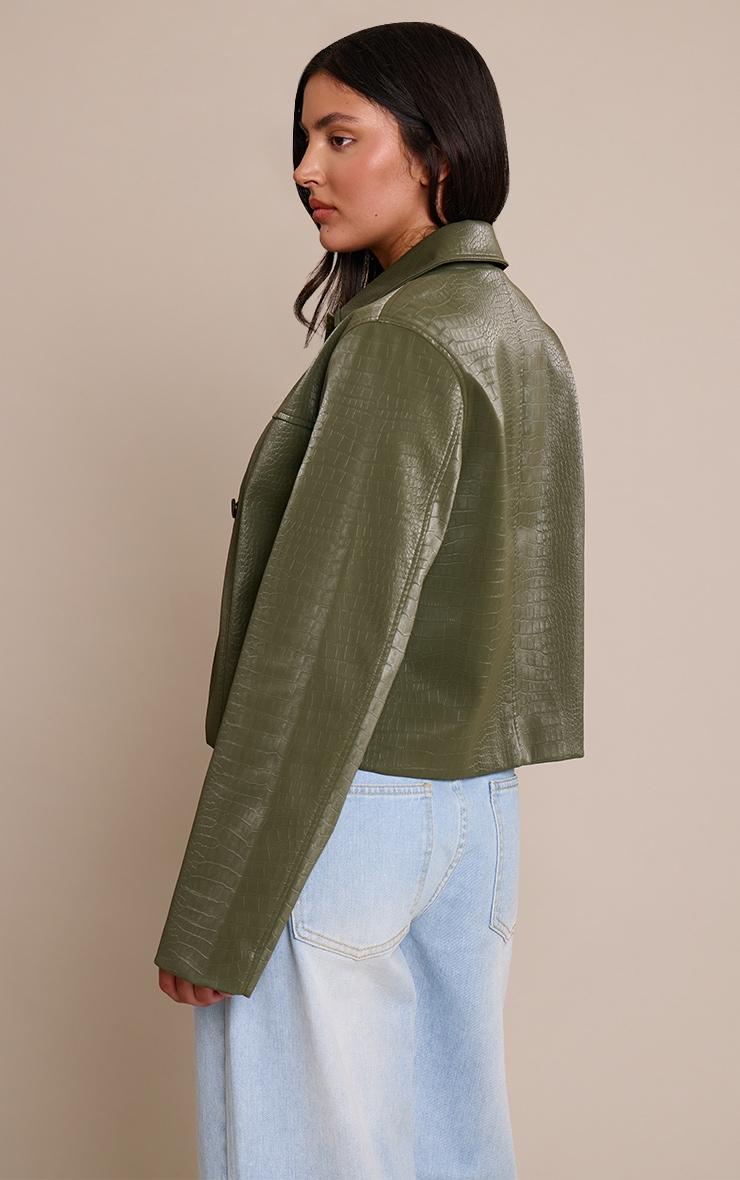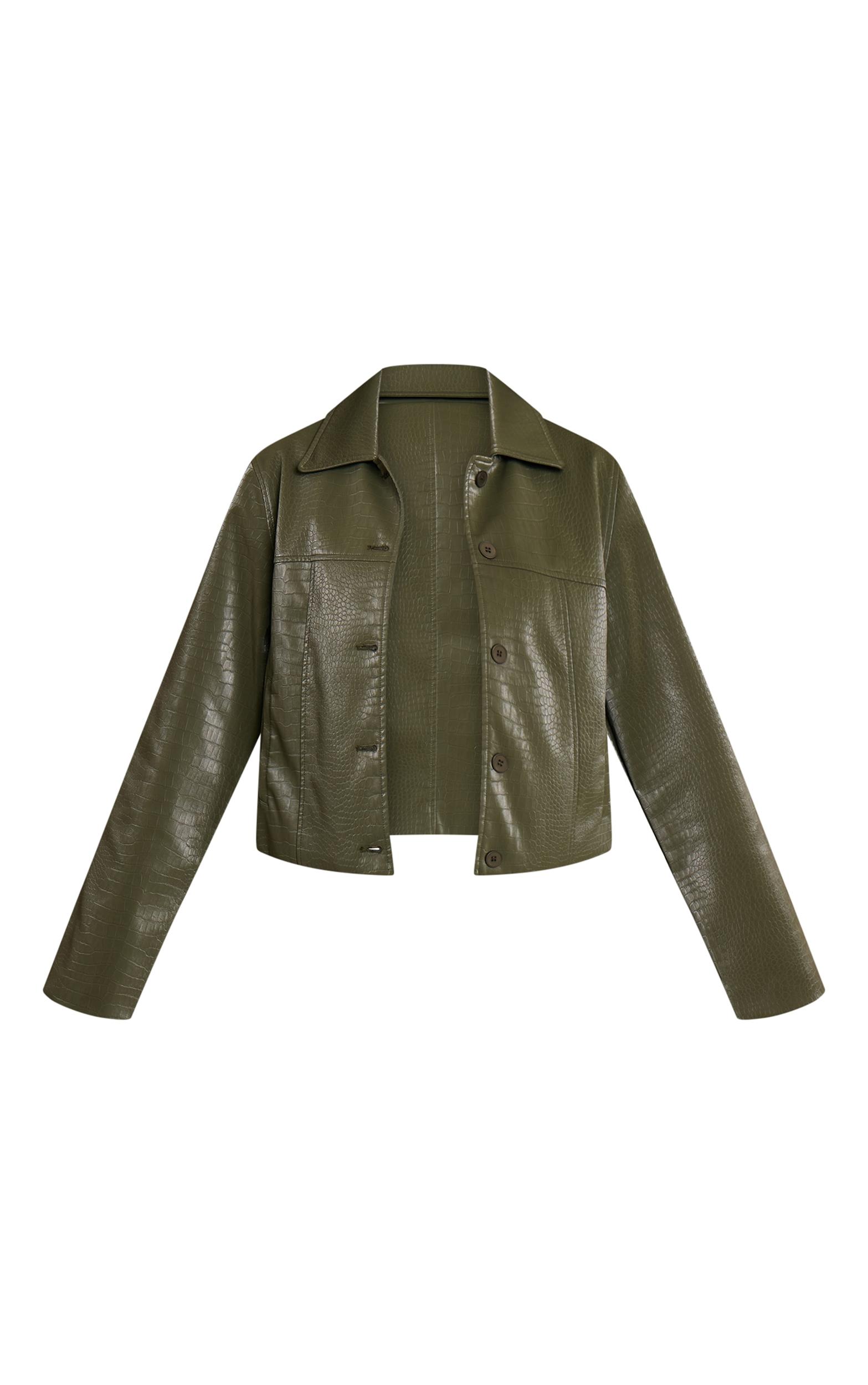 Define your style with the khaki faux leather croc button jacket. Crafted from khaki faux leather, it boasts a sharp collar, cropped cut, and button details. Perfect for elevating day plans, like coffee runs or brunch dates. Style with wide-leg pants, sleek knee high boots, and layered necklaces.Length approx 48.5cm/19inch (Based on sample size S)Model wears size SModel Height - 5ft 9inchp]:!mb-4inch>Brand: PrettyLittleThingCategory: OuterwearProduct type: JacketColor: KhakiMaterial: Tailored WovenOccasion: Day
