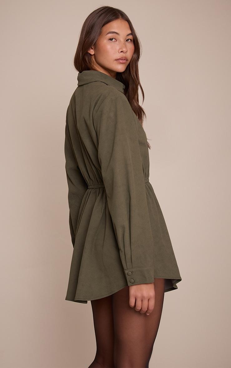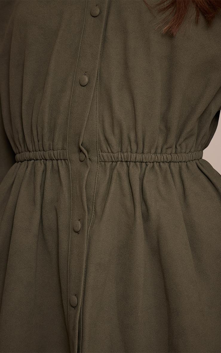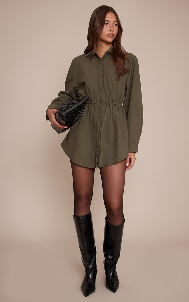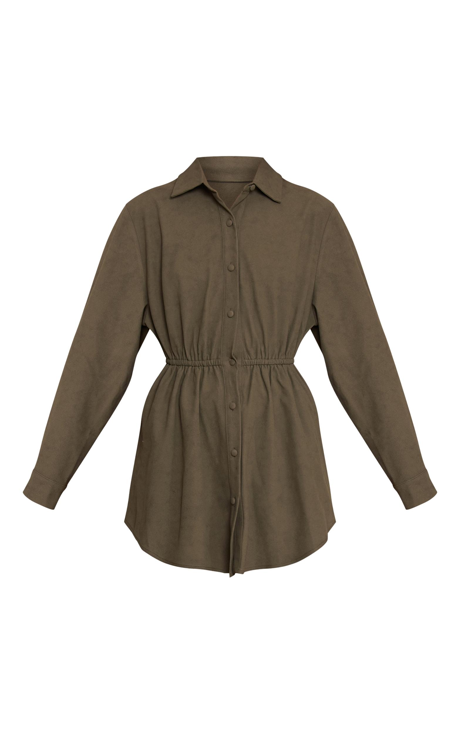Radiate understated cool in the khaki faux suede button down cinched waist mini dress. It boasts a smart collar, button-down front, and a cinched waist. A confident choice for elevated day plans or chic casual meet-ups. Style yours with sleek pointed toe boots and a clutch bag for a polished finish.Length approx 81.5cm/32inch (Based on sample size US 4)Model wears size UK 8/ EU 36/ AUS 8/ US 4Model Height - 5ft 9inchp]:!mb-4inch>Brand: PrettyLittleThingCategory: DressesProduct type: Shift DressColor: KhakiMaterial: Faux SuedeOccasion: Day
