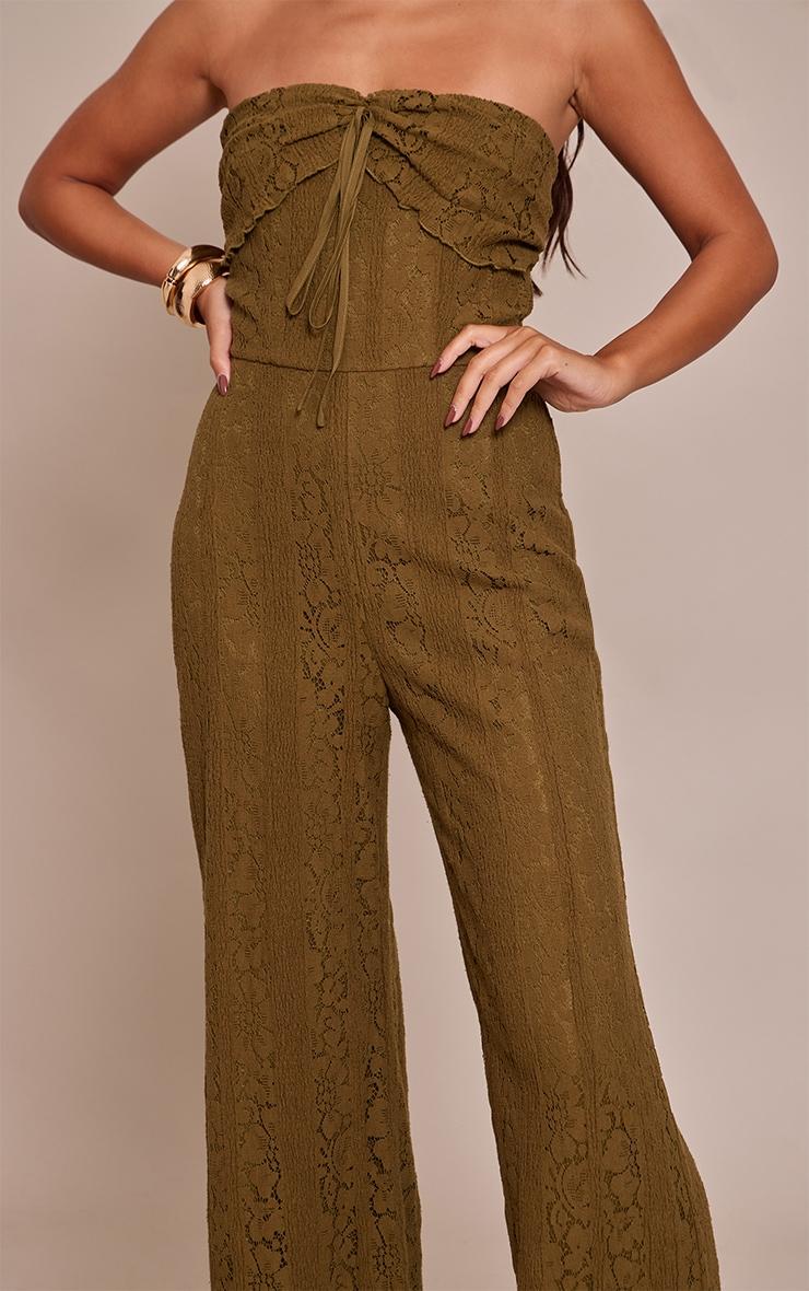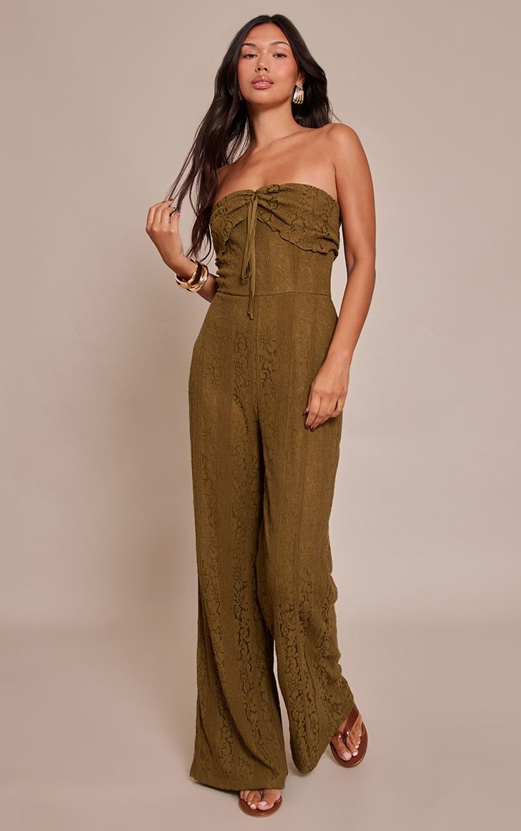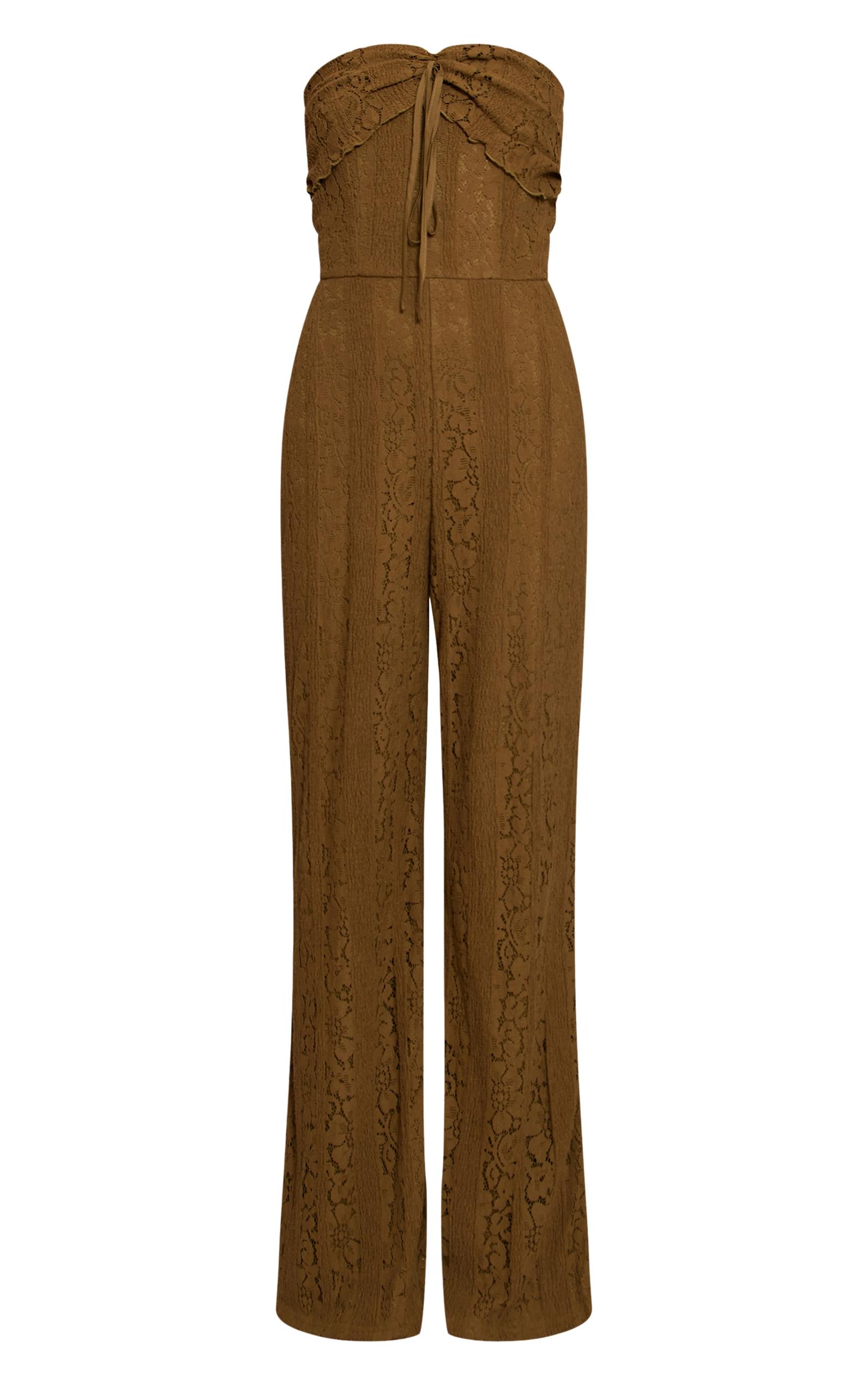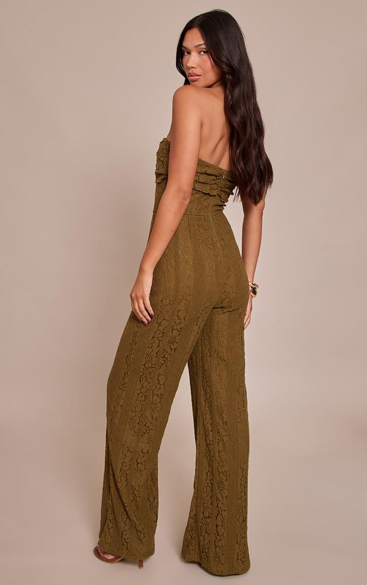 Opt for elegance with the khaki lace fold over straight leg jumpsuit. Made from a khaki lace material, it features a fold over neckline, straight leg silhouette, and a flattering fit. Pair with kitten heels and gold earrings for a fool proof finish.Length approx 155cm/61inch (Based on sample size US 4)Model wears size UK 8/ EU 36/ AUS 8/ US 4Model Height - 5ft 9inchp]:!mb-4inch>Brand: PrettyLittleThingCategory: DressesProduct type: Skinny JumpsuitColor: KhakiMaterial: Stretch LaceOccasion: Evening