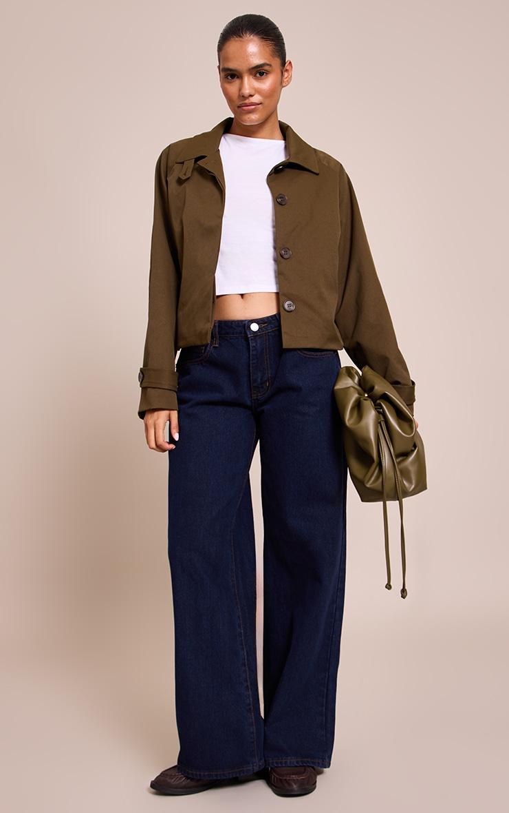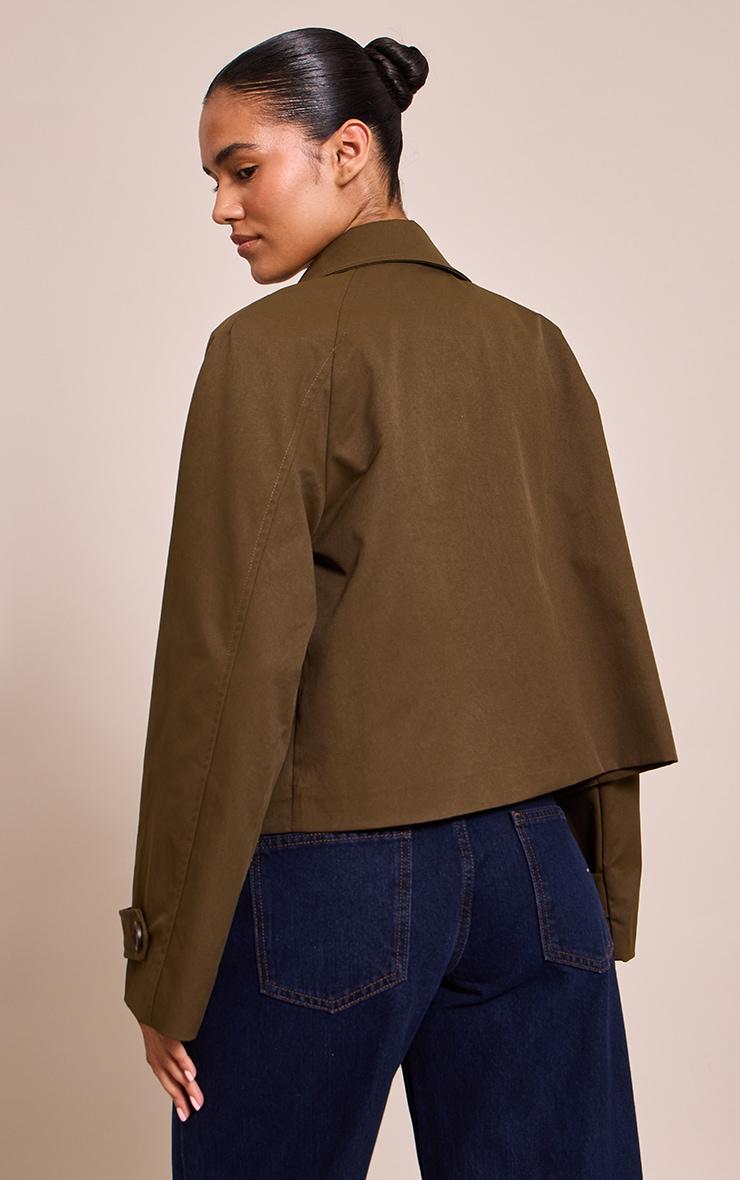 Complete the look with the khaki long sleeve trench style jacket. Made from a khaki material, it features long sleeves, a structural collar and a zip fastening. Style with the wide leg pants or jeans and a pair of mid height heels for a head-to-toe chic look.Length approx 48.5cm/19inch (Based on sample size US 4)Model wears size UK 8/ EU 36/ AUS 8/ US 4Model Height - 5ft 7inchp]:!mb-4inch>Brand: PrettyLittleThingCategory: OuterwearProduct type: JacketColor: KhakiMaterial: Faux LeatherNeckline: ShirtSleeves: LongOccasion: Day