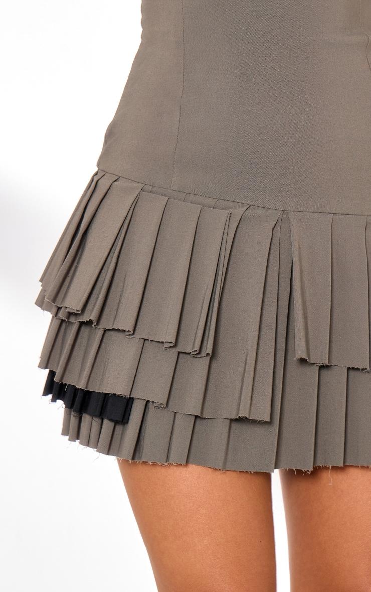 Consider this your sartorial carte blanche: an expertly pleated shift dress rendered in a contemporary khaki stretch woven. The considered design elevates the utilitarian hue, lending a subtly avant-garde edge to a reliably chic silhouette. The extreme pleating adds textural interest and allows for graceful movement, while the shift shape offers day-to-night versatility. Enhance the elevated simplicity with sculptural gold earrings from our jewelry collection for a confident, curated aesthetic. Length approx 105.5cm/41.5inch (Based on a sample size UK 8) Model wears size UK 8/ EU 36/ AUS 8/ US 4Model Height - 5ft 6inchp]:!mb-4inch>Brand: PrettyLittleThingCategory: DressesProduct type: A-line / Skater DressColor: KhakiMaterial: BengalineDesign: PlainNeckline: Straight NeckSleeves: Spaghetti StrapOccasion: Day
