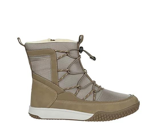 Khombu Beth Womenâs Cold Weather Boot â Bronze Trudge through the snow in the Khombu Beth cold weather Boot. With a textile upper featuring a warm fleece lining, these easy-on Bootshave dual pull tabs and toggle webbing for a secure fit. The treaded sole offers needed traction in slushy conditions. Textile upper Inside zip closure Toggle webbing Fleece lining Traction outsole