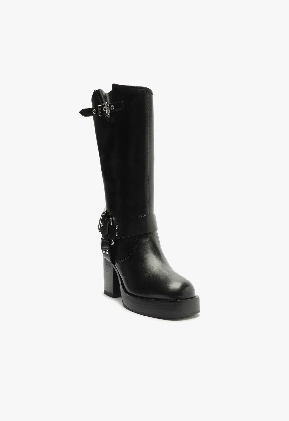 The Kiara Block Atanado Leather Boot is a timeless and sophisticated style. Crafted with a premium leather, the round toe and block heel give a fashionable, contemporary look. Content + Care Atanado Prime Leather, Cow Leather Upper, Synthetic Outsole Spot Clean Imported Size + Fit Heel Height: 3 , Platform Height: 0.8 , Shaft Circumference: 14.5 , Shaft Height: 10.7 Schutz Kiara Leather Heeled Moto Boot in Black, Womens at Urban Outfitters