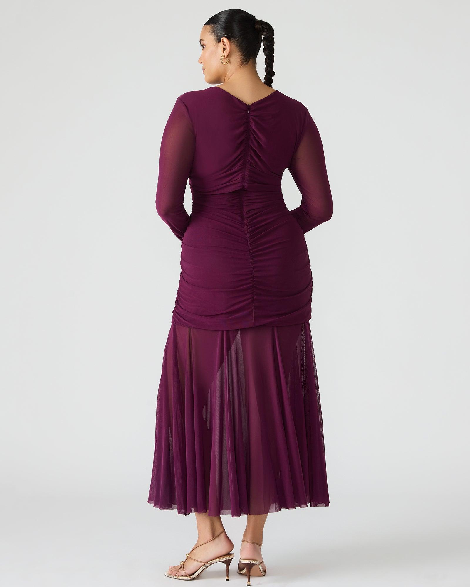 The KIARA dress features a long-sleeved, mesh design that offers a lightweight and breathable fit. Its flowy silhouette enhances movement and comfort, making it an elegant choice for both casual and dressier occasions. The mesh fabric adds a modern, textured look while maintaining a delicate, airy feel. Ideal for layering or wearing alone, this dress combines style with versatility for a refined wardrobe staple. Long-sleeved maxi dress Mesh overlay Flowy bottom skirt 92% polyester 8% elastane Hand wash Madison is 5ft 8in and is wearing a size small Stephanie is 5ft 10in and is wearing a size large Imported