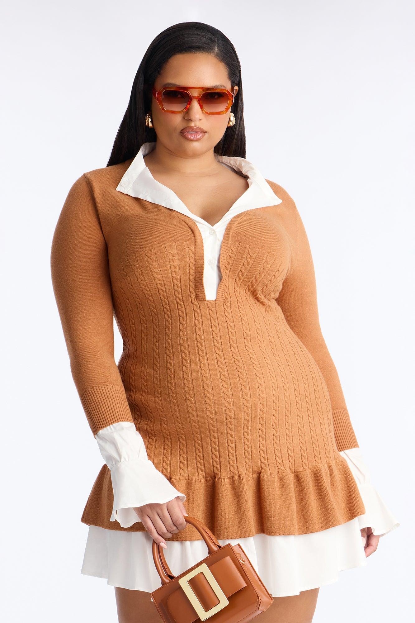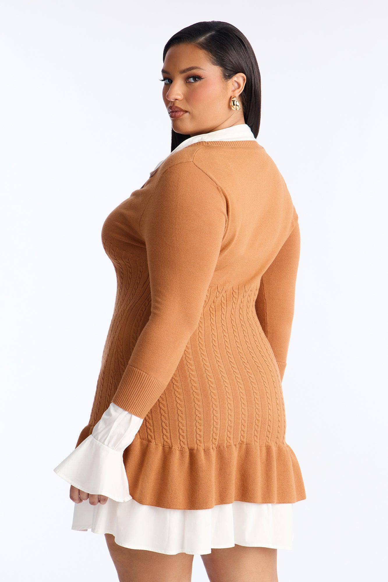 Kiara Peplum Sweater Mini Dress - Mocha Female