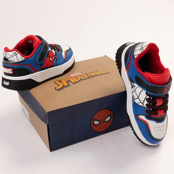 Give your little web slinger a heroic look with the Marvel Spider-Man Lo Sneaker from Kid Power! These stylish sneakers rock multi-media leather uppers with Spider-Man graphics, extra tongue and collar padding, and a flexible rubber outsoles for traction. Available exclusively at Journeys Kidz!