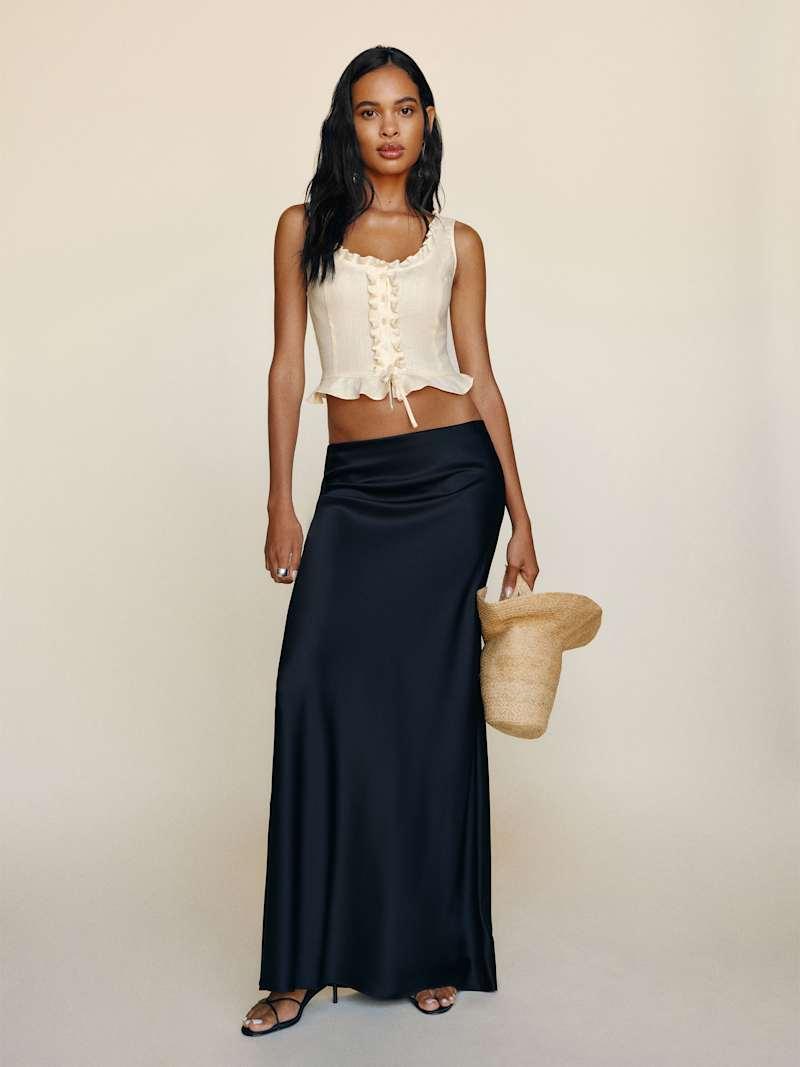 On top of it. Shop the Kiera Linen Top from Reformation, a sleeveless top with a button front, tie, and ruffle trim throughout.