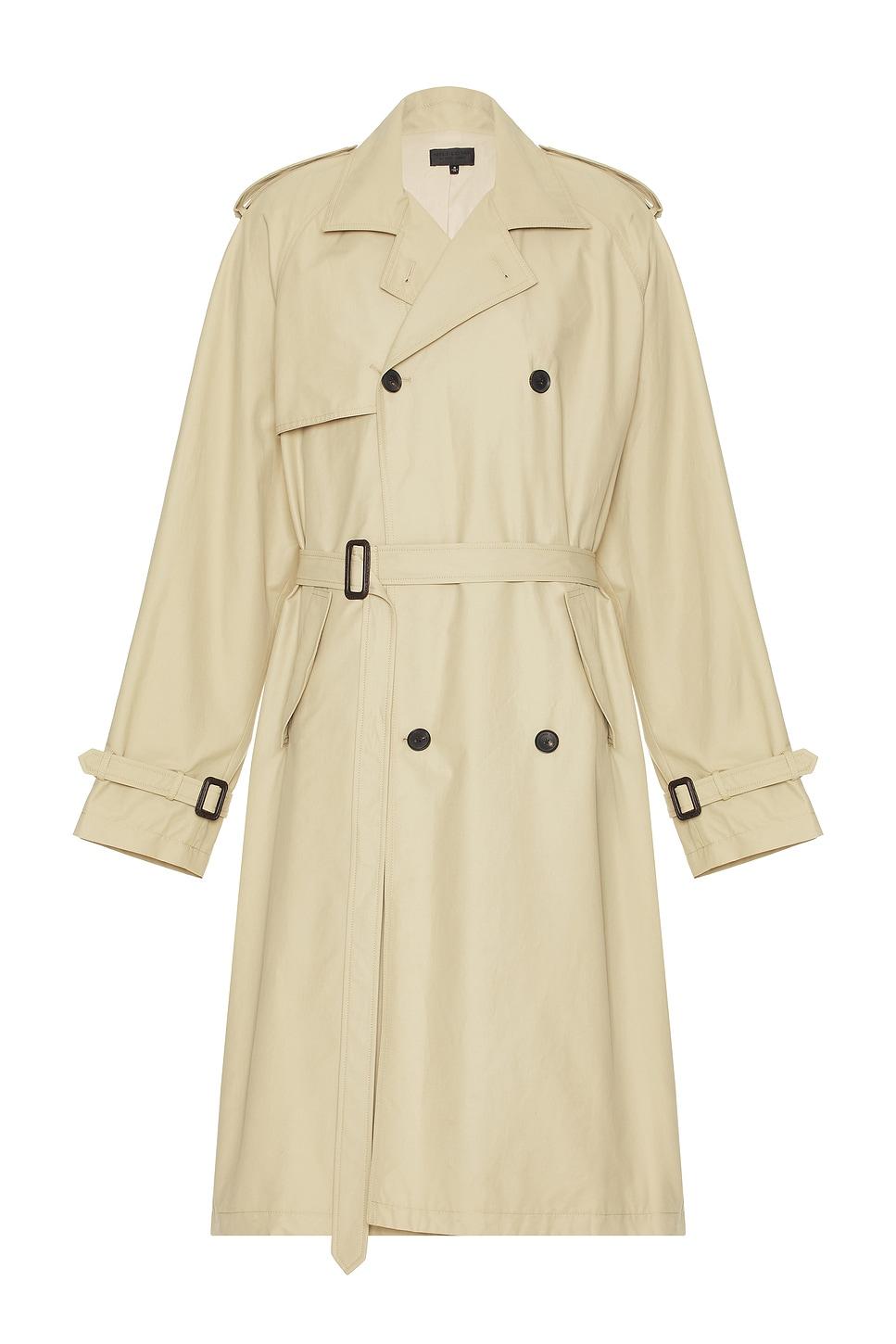 jacketSelf: 80% cotton, 20% polyamideTrim: 100% cowhide buckle / Made in USA / Dry clean only / Double breasted closureSelf tie belt with buckle closure / Side flap pockets and interior welt chest pockets / Epaulets and sleeve loops / Lightweight fabric with storm shield and back vent / Includes belt / Our Style No. NILF-MO4 / Manufacturer Style No. 21970-W790 / Model is wearing size M.