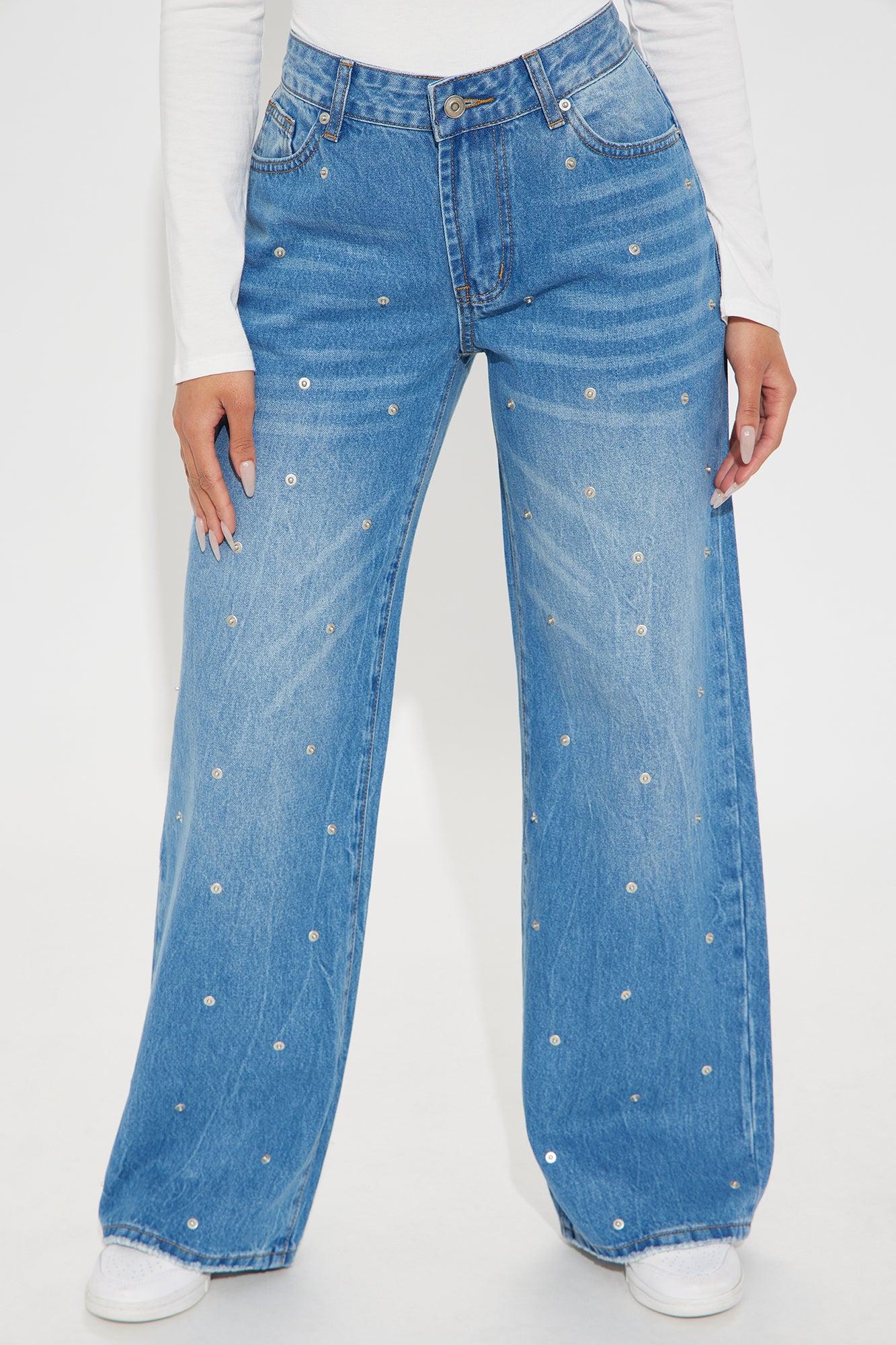 Kiersten Non Stretch Embellished Wide Leg Jeans - Medium Wash