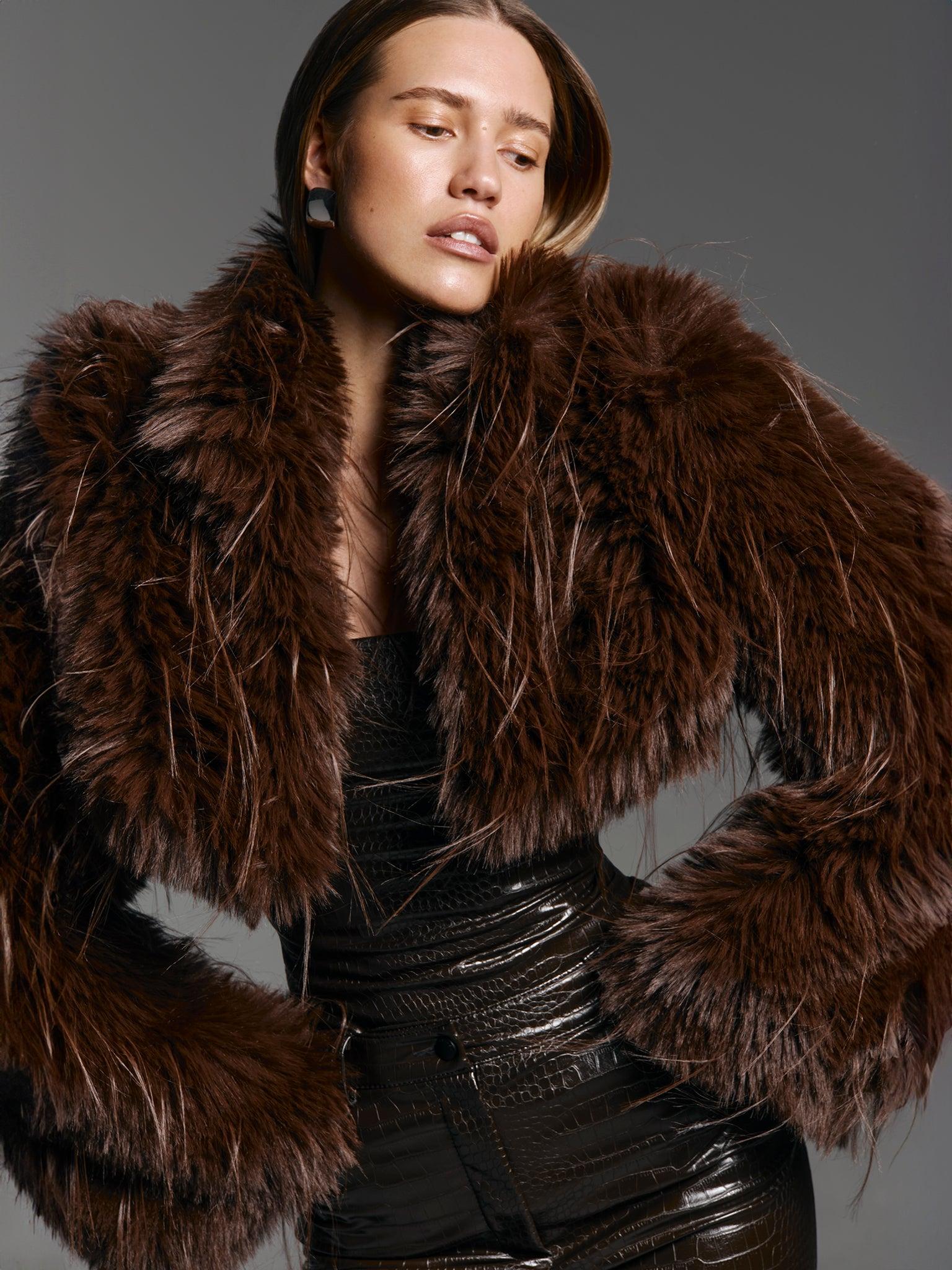 Bare skin, bold texture. The Killa Bandeau in Brown Croc is cut from croc-embossed vegan leather, its clean tube shape polished yet daring. Smooth lines, sharp edge—minimal coverage with maximum effect.