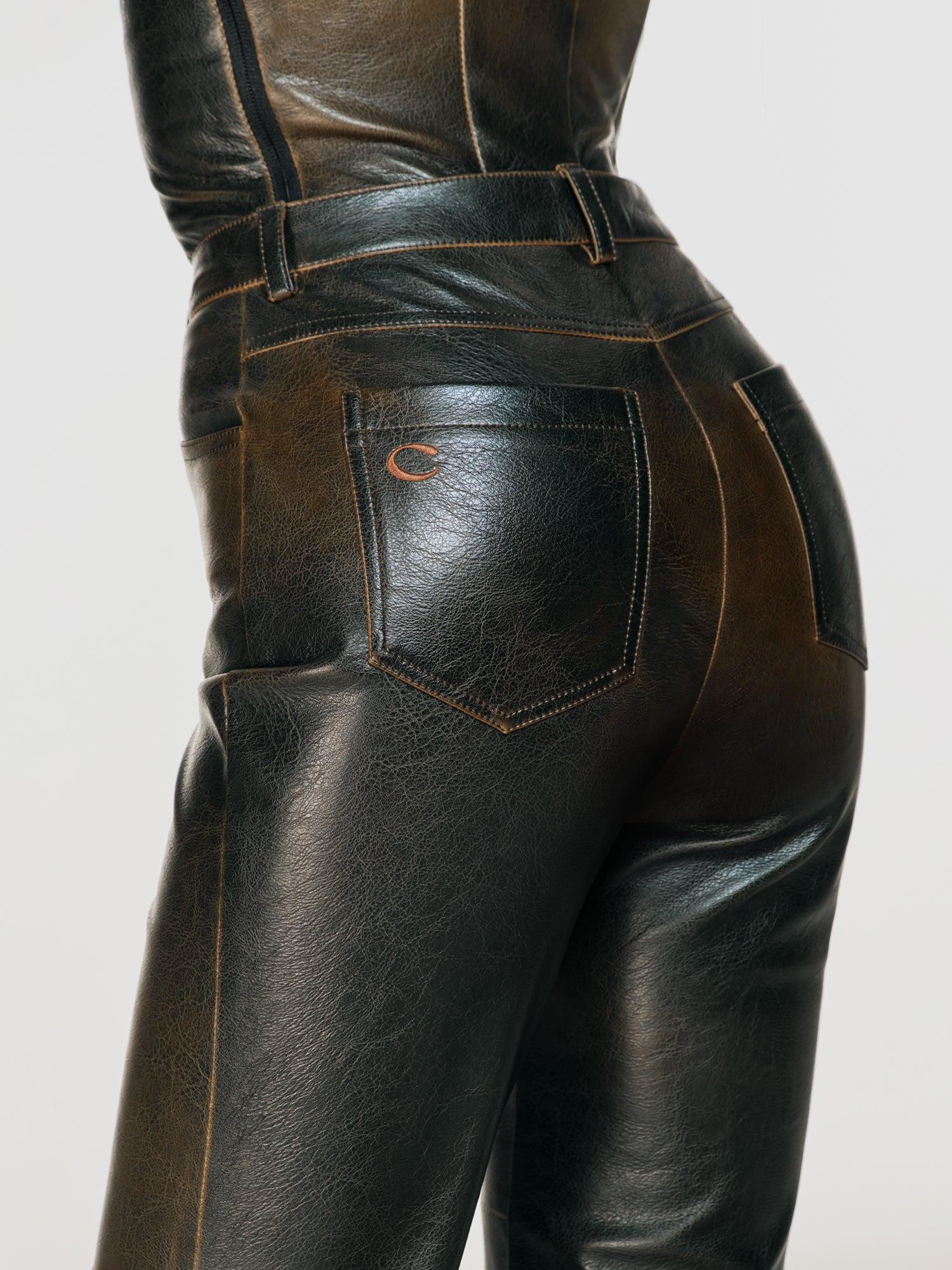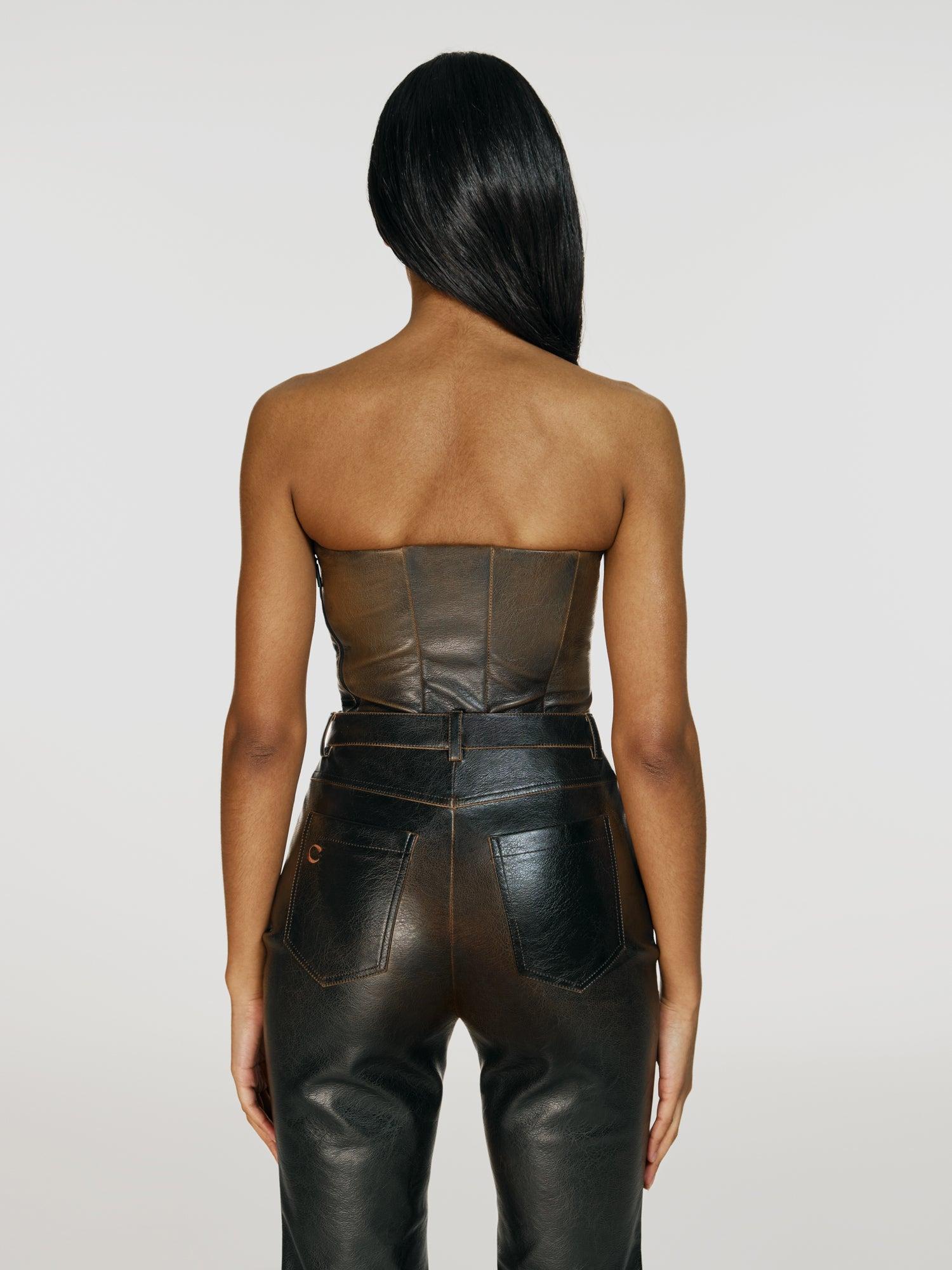 Unveil the radiance with our Killa bandeau in Burnt. Made of the highest quality vegan leather in a gradient from dark to light brown, this top sits smoothly against your body, accenting your shoulders line. It has a slim fit that makes it easy to tuck into trousers. Complement the Killa bandeau in Burnt with Killa pants in Burnt for a fire look.